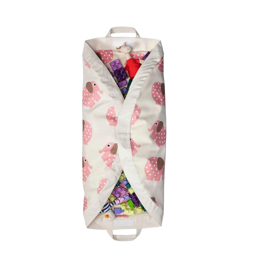 Skvělá taška na ukládání hraček, která slouží zároveň jako podložka na hraní - snadný způsob, jak udržet hračky na jednom místě, připravené ke hře! Rukojeti a pevná bavlna usnadňují přenášení z místnosti do místnosti. Díky přenosnému a odolnému designu je také ideálním úložným vakem pro všechny ty malé kousky Lego®! Jednoduše položte celou tašku na podlahu a otevřete ji do hracího prostoru, jakmile děti dohrají, jednoduše tašku složte a ukliďte!