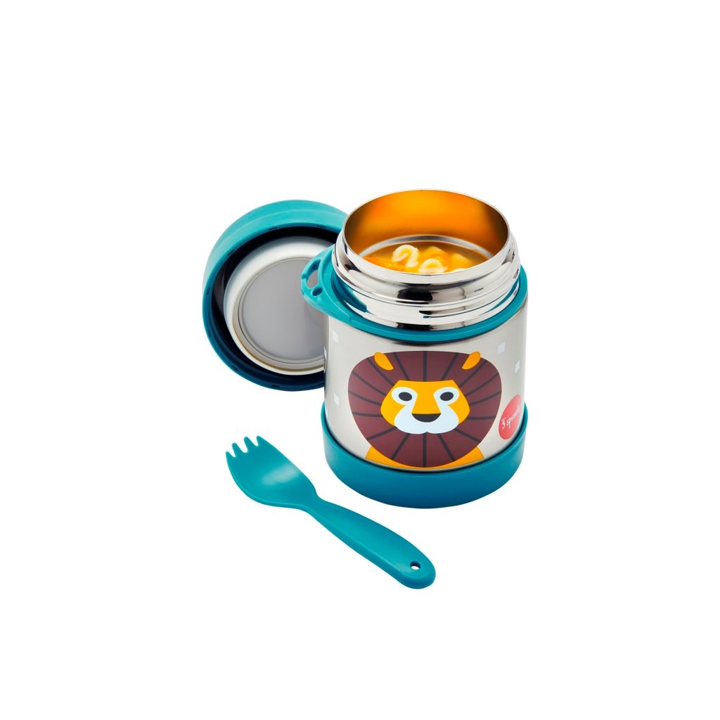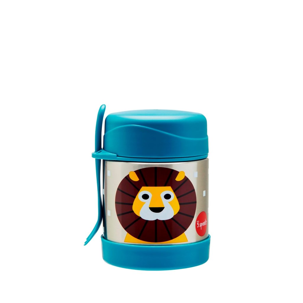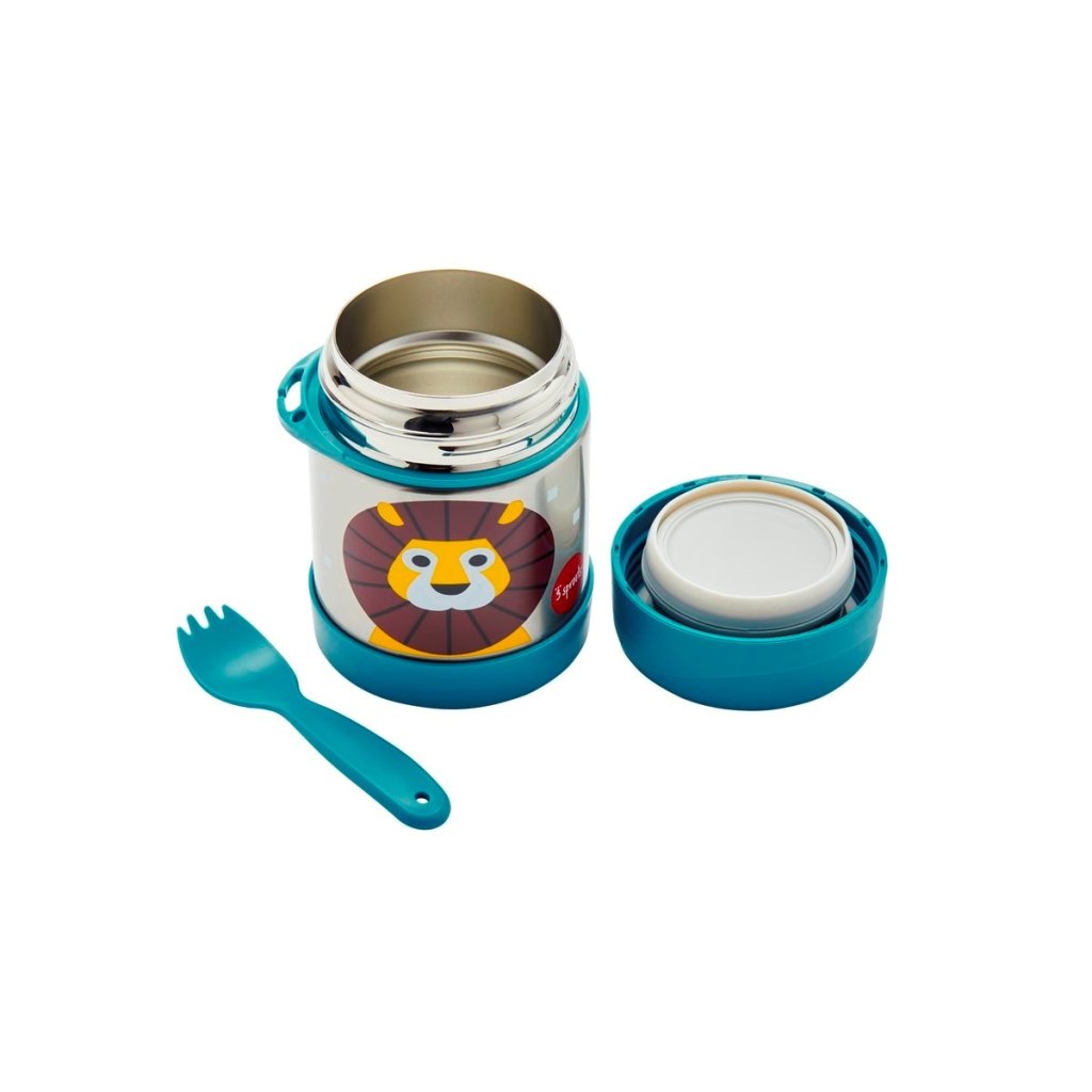 3 SPROUTS Stainless Steel Termoska na jídlo + vidlička Lion Blue
