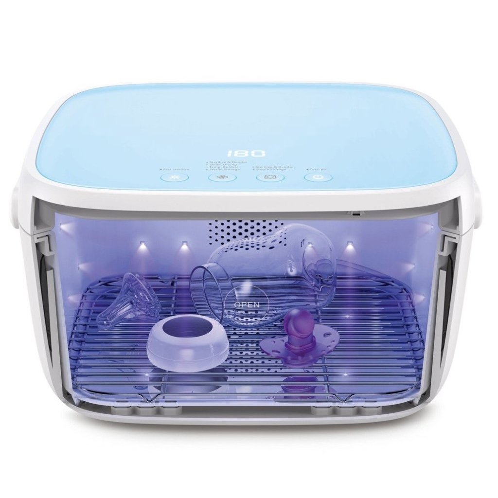 UV sterilizátor pro sterilizaci kojeneckých lahví na cestách. Lehký a kompaktní design sterilizátoru usnadňuje vzít si s sebou kamkoli - dovolená, návštěvy atd.