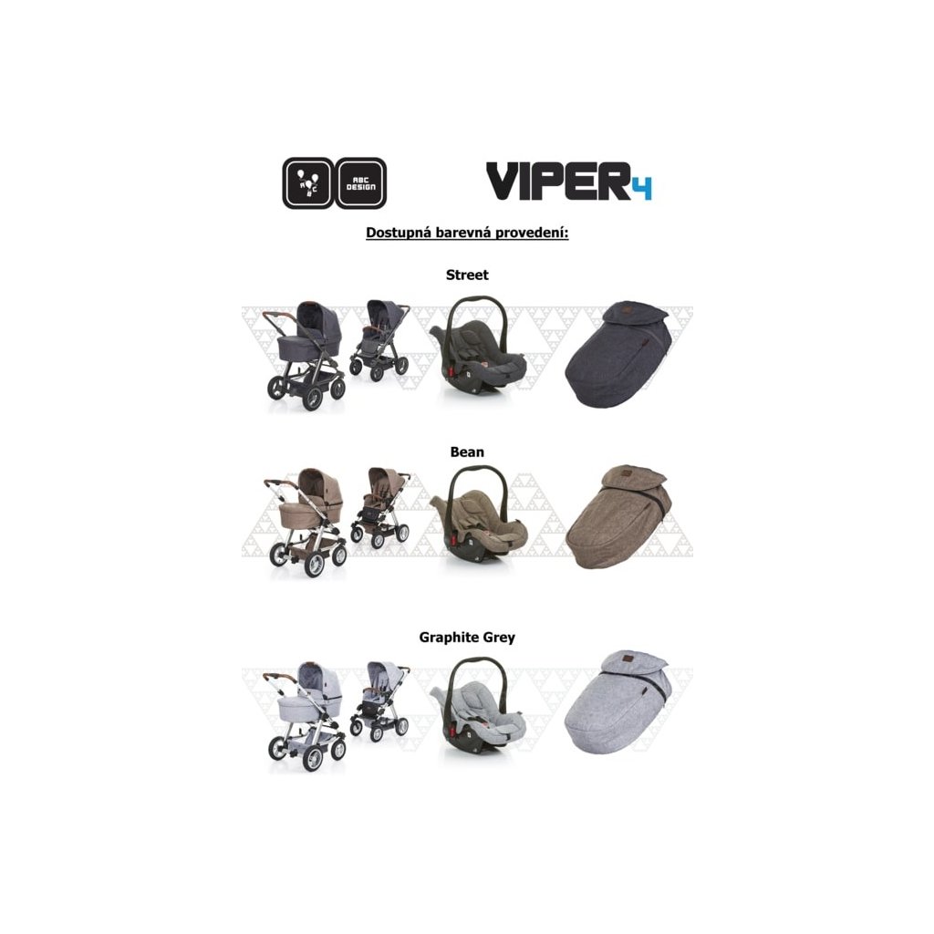 Součástí tohoto setu je kombinovaný kočárek ABC Design Viper 4, autosedačka Hazel, adaptér a nánožník. To vše za zvýhodněnou cenu 15.490 Kč místo 18.359 Kč! Tento set má béžovou melírovanou barvu.