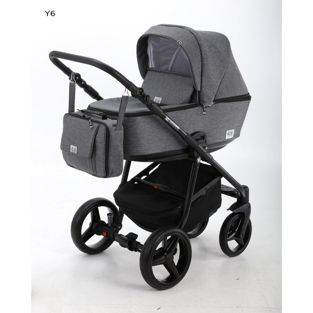 Reggio je kočárek určený nejen pro bezpečnost a pohodlí dítěte, ale také v souladu s nejnovějšími trendy ve světě módy a designu. Rám je vybaven dvojitým, novým tlumičem nárazů, který má možnost úplného vypnutí. Díky této funkci a otočným předním kolečkům kočárek jede hladce na jakémkoli povrchu. Bouda kočárku má v případě potřeby další větrací otvor a sluneční clonu. Korbička má v dolní části nastavitelný ventilační otvor. Nánožník obsahuje okno, které vám umožní pozorovat dítě. Konstrukce je doplněna moderními, bezúdržbovými pěnovými koly, které nevyžadují foukání. Model je vybaven kokosovou matrací. Kočárek v provedení z látky.