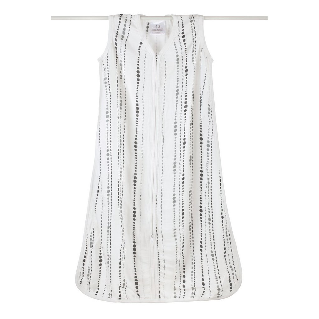 Spací pytel Bamboo Aden and Anais je ušit z hedvábí vyrobeného z mušelínu z bambusových vláken. Díky tomuto materiálu je neskutečně měkký, citlivý k dětské pokožce a prodyšný. Ve spacím pytli nehrozí, že se vaše děťátko odkope nebo zamotá do peřin, a tak jej nic nebude vyrušovat z klidného spánku. Díky dlouhému zipu se s dítětem ve spacím pytli snadno manipuluje a pohodlně je přebalíte. Motiv spacího pytle je laděn do neutrálních odstínů šedé a je zabalen v dárkové krabičce.