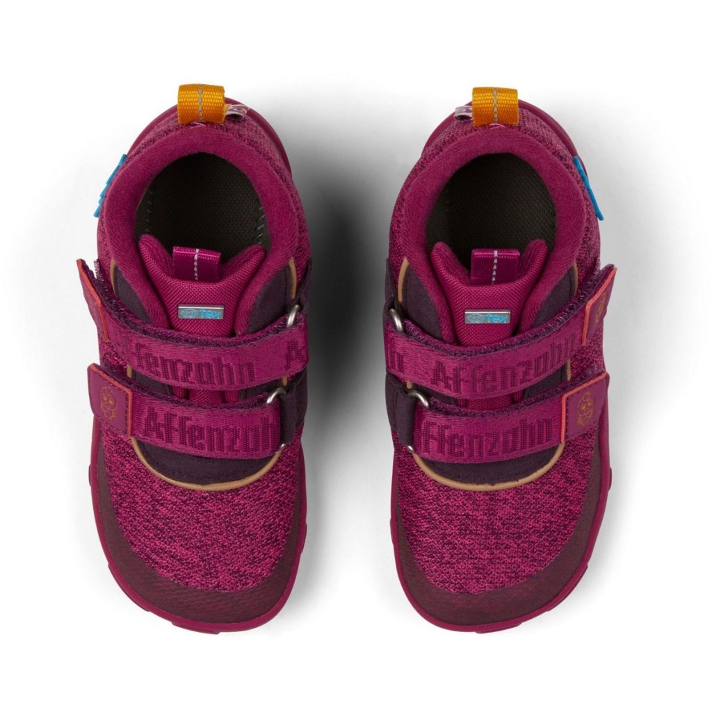 Dětské vysoké barefoot boty ergonomického tvaru z recyklovaného Bluesign polyesteru. Díky tenké, ohebné a neklouzavé podrážce umožňují přirozenou dynamiku chůze a postupné odvalování chodidla. To spolu s ergonomickým tvarem a dostatečnou šířkou a místem pro prsty umožňuje přirozený a zdravý vývoj dětských nohou. Nepromokavá a prodyšná membrána Affentex zajistí, že budou dětské nohy stále v suchu a v teple bez ohledu na počasí. Bezpečnost dítěte zajistí reflexní prvky, které jsou umístěny po celém obvodu boty a na patě. Boty se zapínají na pásek se suchým zipem.