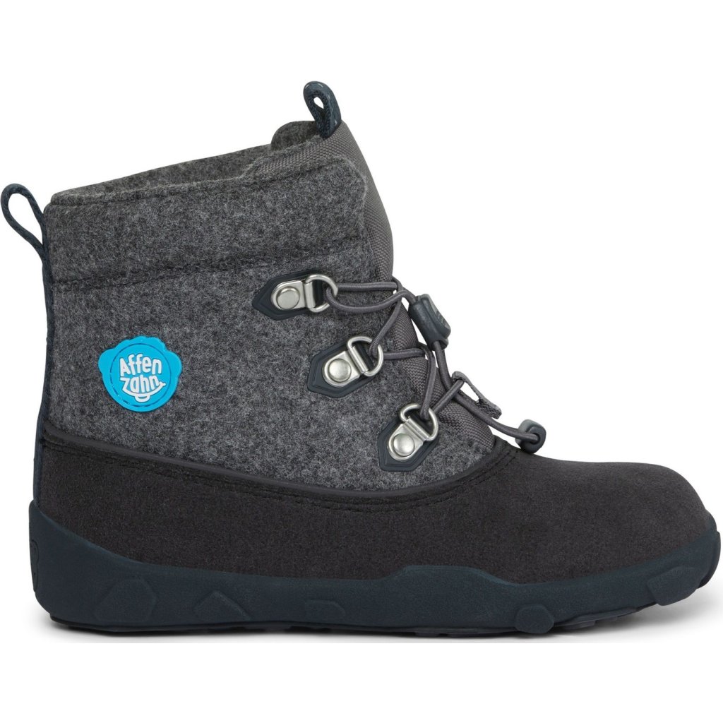 AFFENZAHN Dětské barefoot boty Minimal Midboot Wool - Dog/Grey/Black