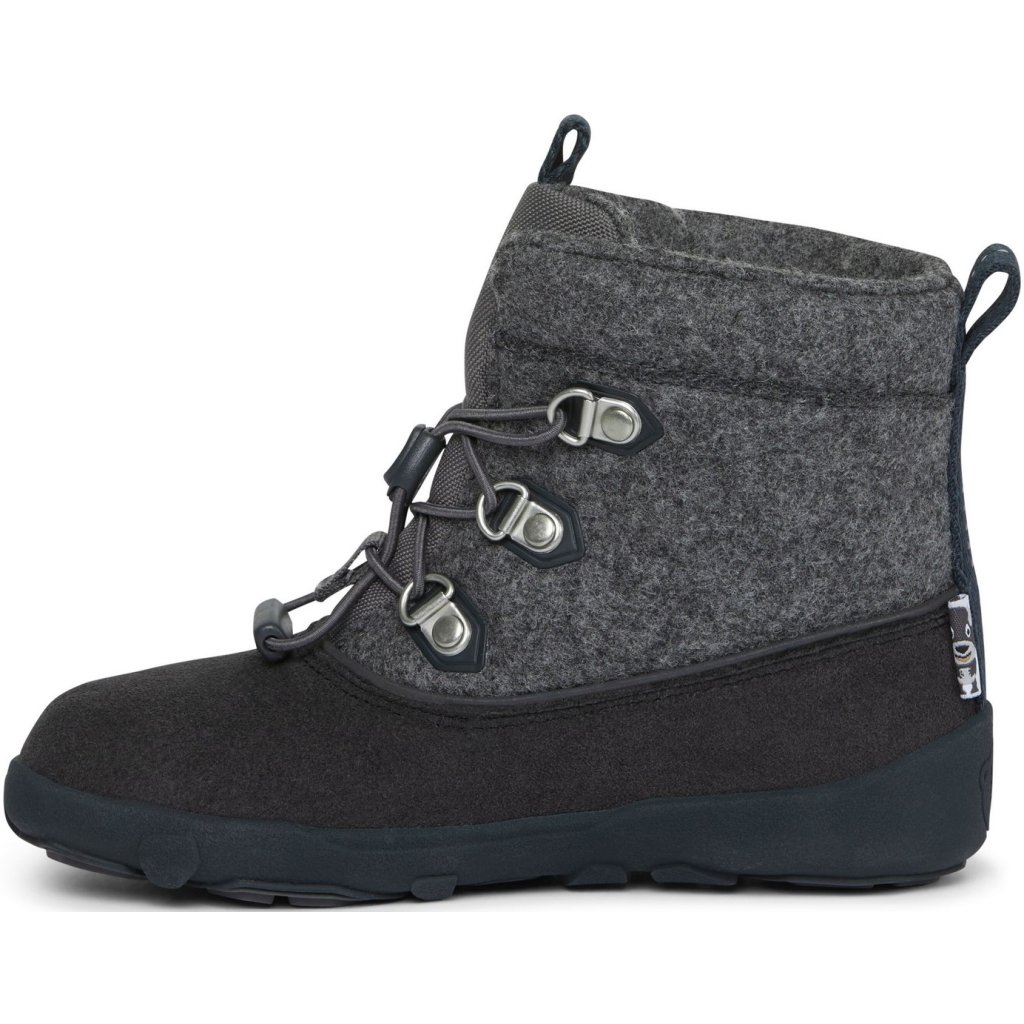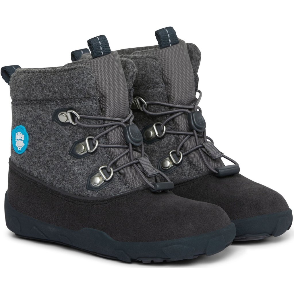 Dětské vlněné kotníčkové barefoot boty ergonomického tvaru. Díky tenké, ohebné a neklouzavé podrážce umožňují přirozenou dynamiku chůze a postupné odvalování chodidla. To spolu s ergonomickcým tvarem a dostatečnou šířkou a místem pro prsty umožňuje přirozený a zdravý vývoj dětských nohou. Nepromokavá a prodyšná membrána zajistí, že budou dětské nohy stále v suchu a v teple bez ohledu na počasí. Bezpečnost dítěte zajistí reflexní prvky, které jsou umístěny po celém obvodu boty a na patě. Boty se zavazují elastickými tkaničkami.