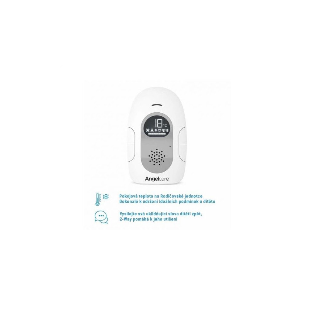 Angelcare monitor zvuku AC110 se vyznačuje vysoce kvalitním zvukem přenášeným mezi vámi a vaším dítětem. Zvuk je jasný a srozumitelný a díky obousměrné komunikaci vás uslyší vaše dítě a bude se tak cítit bezpečně. Zabezpečený digitální přenos zvuku přenáší i ty nejjemnější zvuky. Monitor má vestavěný teploměr, který měří aktuální teplotu v místnosti, kde je dítě. Barevný indikátor na dětské jednotce vás upozorní, jestli je teplota v pokoji příliš vysoká, nízká, nebo jsou tam nastaveny ideální podmínky pro dítě. Se všemi těmito vlastnostmi tak mají rodiče po ruce stylový audio monitor s brilantním zvukem, který splňuje veškeré současné požadavky.