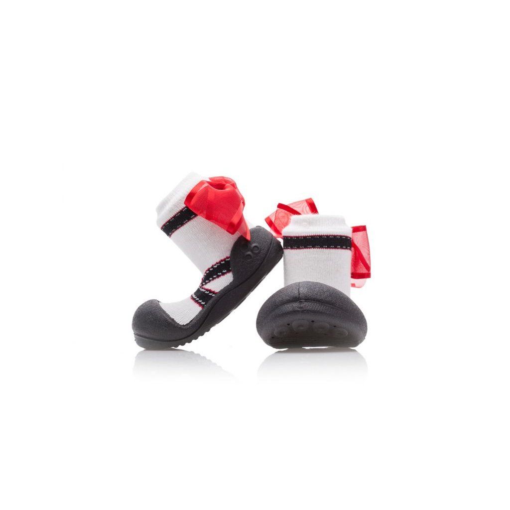 Kolekce botiček Attipas Balett je určená pro holčičky, které mají rády pohodlí a krásu. Klasická kombinace černé a bílé je zde doplněna o červené mašličky na zadní části boty. Rozšířená špička umožnuje pohyb prstů, cože je velmi důležité pro správný motorický rozvoj Vašeho dítěte.