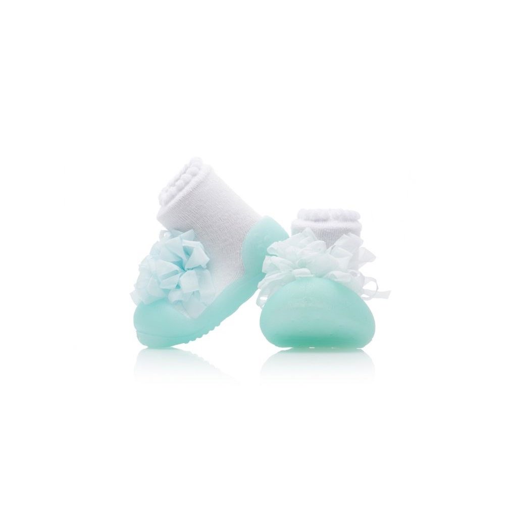 V roztomilých Attipaskách New Corsage okouzlí Vaše malá princezna všechny kolem. Jemný mintový odstín spolu s výraznou mašlí z nich dělají originální módní kousek. Botičky Attipas kromě svého vzhledu vynikají především svým tvarem. Ten byl navržen ve spolupráci s dětskými doktory a ortopedy tak, aby poskytoval prstíkům při chůzi dostatek prostoru a napomáhal tak ve správném vývoji nohy a chůze samotné. Další výhodou je zpevněná silikonová špička, která zabraňuje úrazům při zakopnutí.