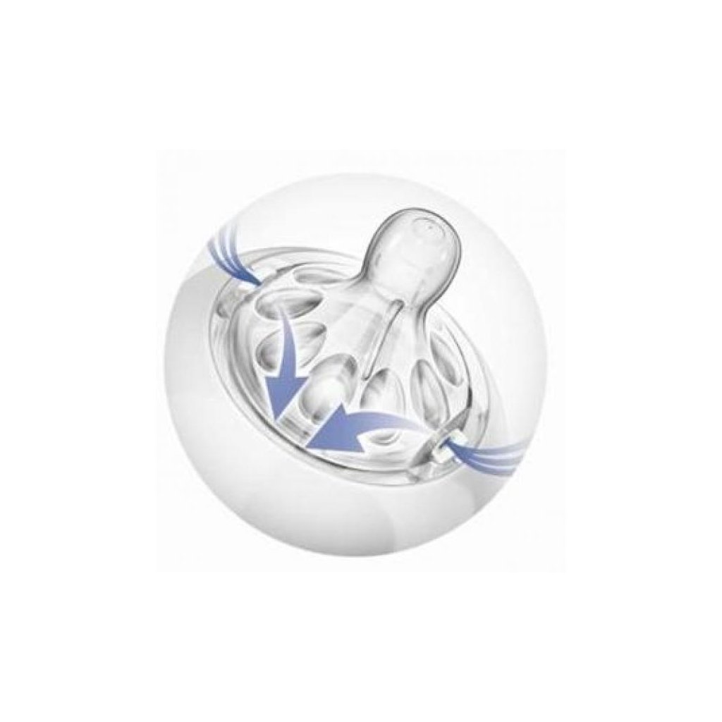 Široký dudlík láhve má tvar prsu a podporuje tak přirozené přisátí podobné jako při kojení. Díky tomu usnadňuje dítěti kombinaci kojení a krmení z láhve. Inovativní dvouventilový systém pak snižuje riziko koliky. Vzduch je totiž pouštěn do láhve, nikoliv do břicha dítěte.