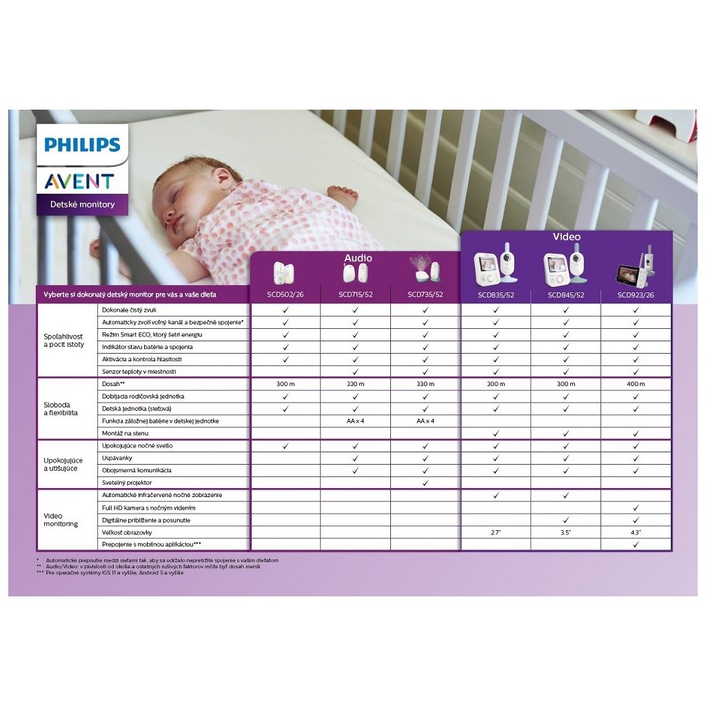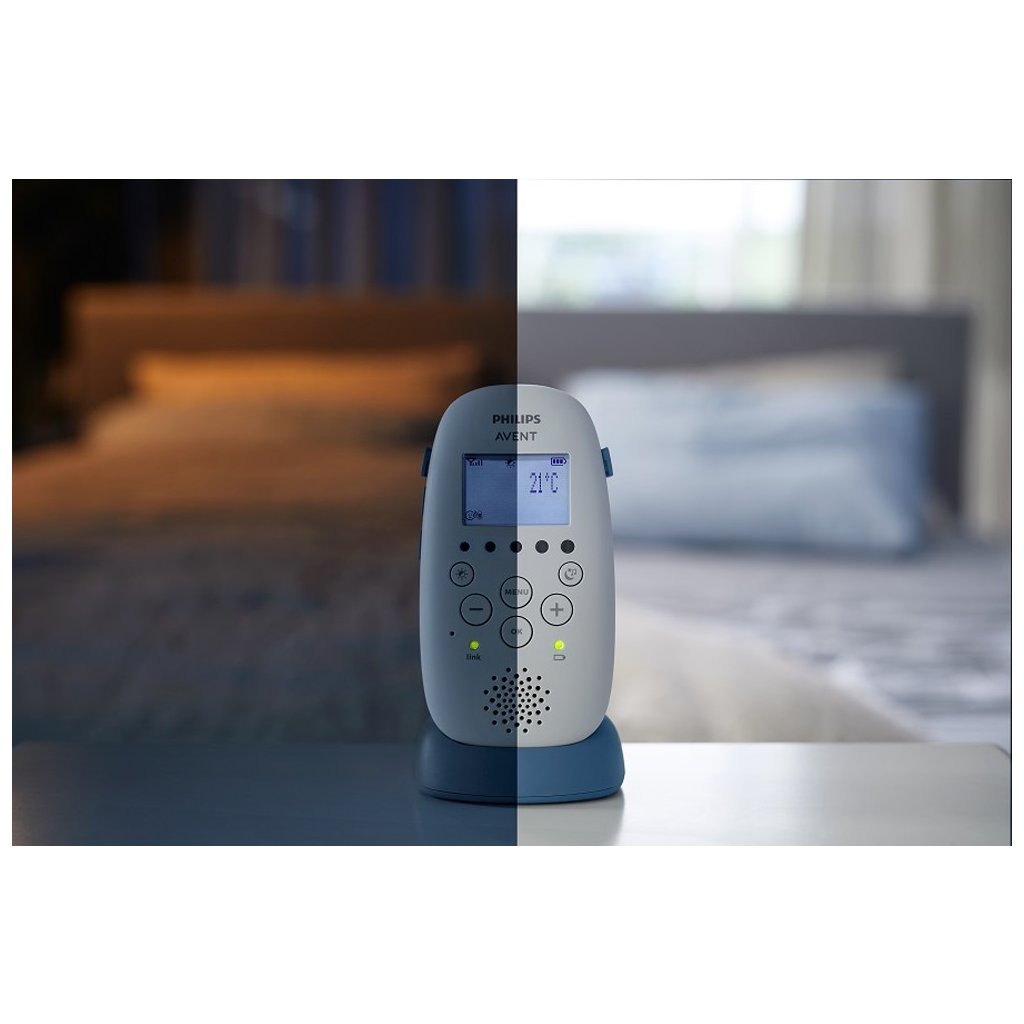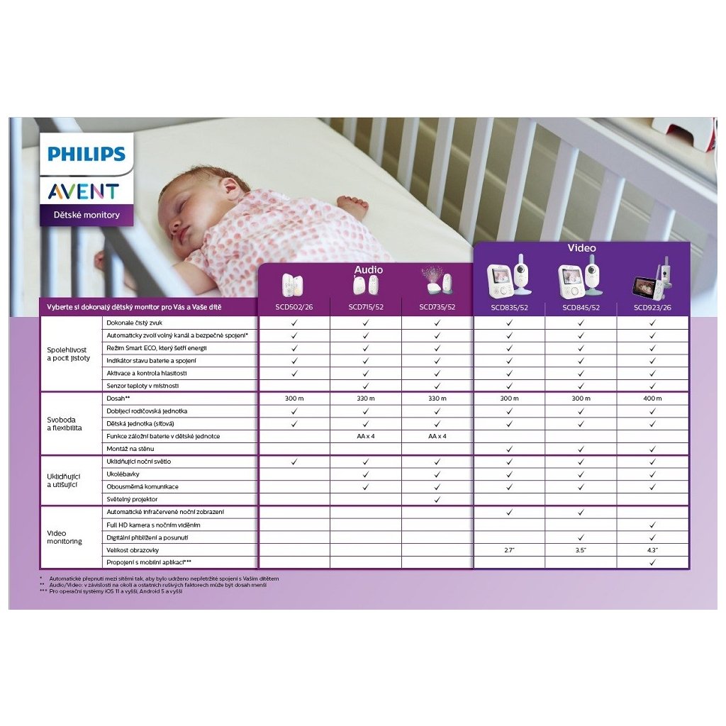 Jistota a pohoda pro vás a vaše dítě. Tato elektronická chůva Philips AVENT zaručuje maximální pohodlí a pocit bezpečí pro vás i vaše dítě. Nabízí vysoce spolehlivé spojení a řadu funkcí k uklidnění dítěte. Navíc promítá noční světlo s hvězdami, které si vaše dítě určitě zamiluje! S novou řadou monitorů DECT Philips AVENT můžete v klidu odpočívat s vědomím, že je vaše dítě spokojené, i když s ním nejste v místnosti. Nová řada monitorů DECT poskytuje množství neocenitelných vlastností. Digitální technologie vás upozorní i na nejtišší šepot a umožní vám uklidnit vaše dítě díky spojení s garancí nulového rušení v domě a v jeho okolí.