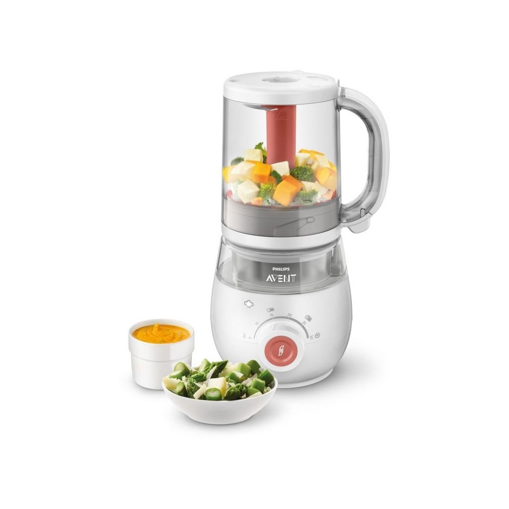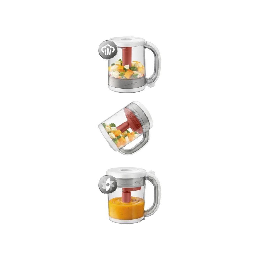 Náš přístroj 4 v 1 pro přípravu zdravé dětské stravy zvládá každý krok procesu mixování od velmi jemně rozmixovaného ovoce a zeleniny přes míchání masových, rybích a luštěninových přísad po vytvoření směsi s malými kousky.