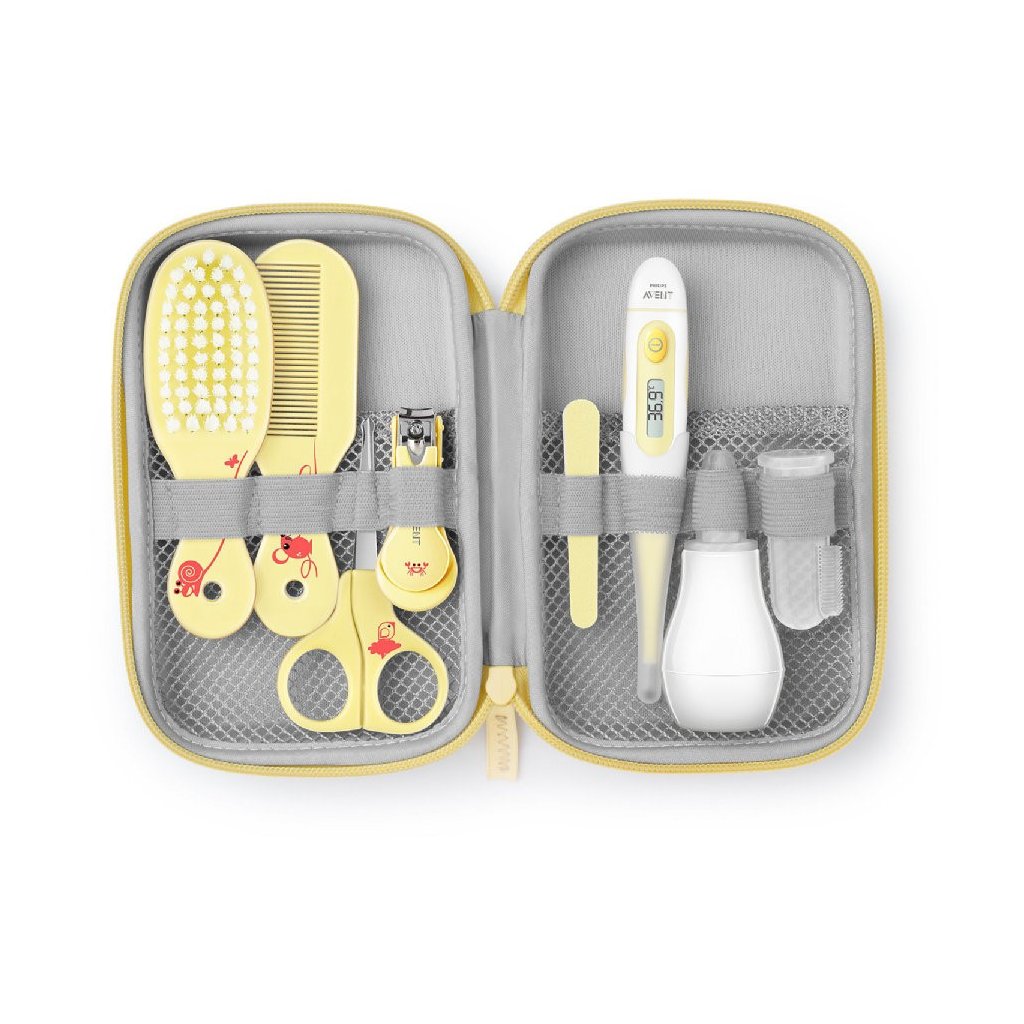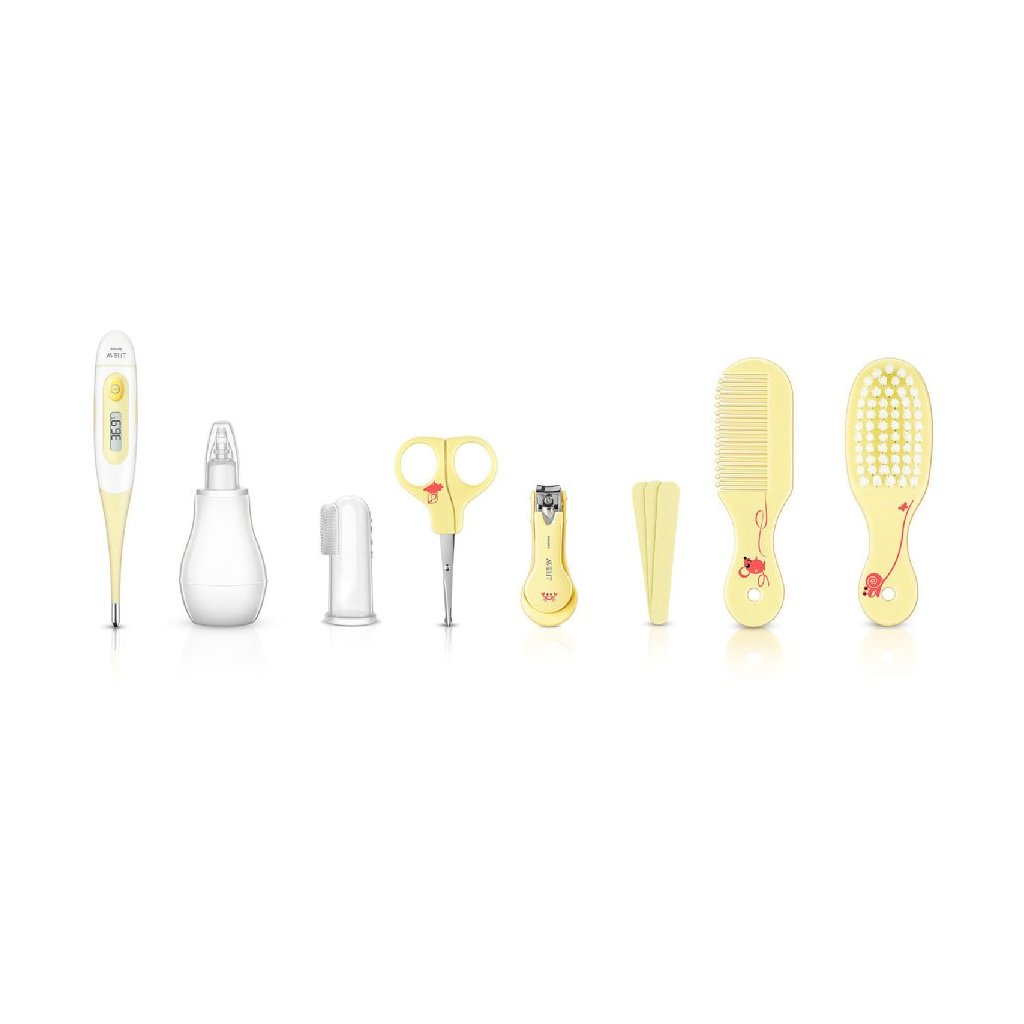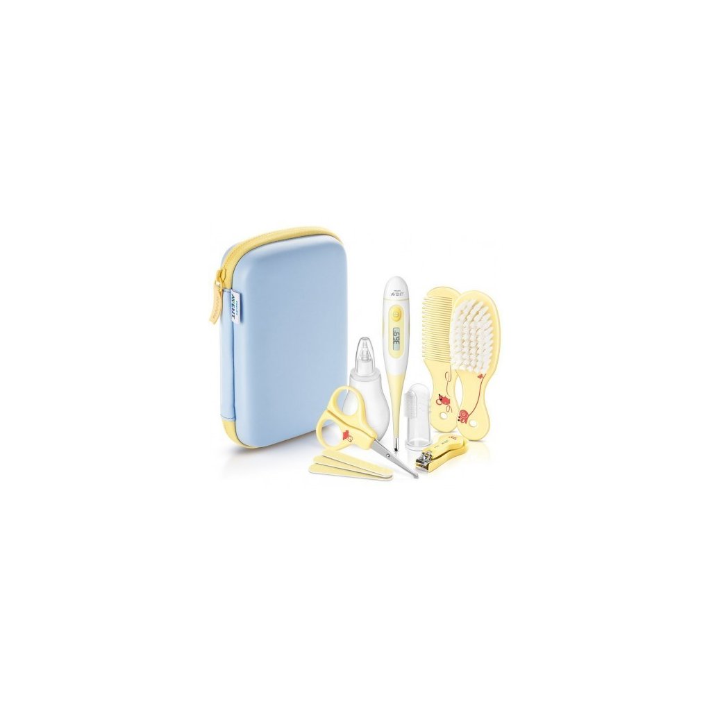Pokud přemýšlíte, jaké různé pomůcky budete potřebovat pro péči o své miminko, přestaňte si lámat hlavu a pořiďte pro sebe a své dítě tuto sadu značky Avent. Najdete v ní všechny nezbytné pomůcky, se kterými poskytnete svému dítěti tu nejlepší péči. Set je kompaktní, obsahuje přesný, pohodlně a rychle měřící digitální teploměr, nosní odsávačku s jemným koncem, plastový kartáček na první zoubky a set pro péči o nehty a vlasy.