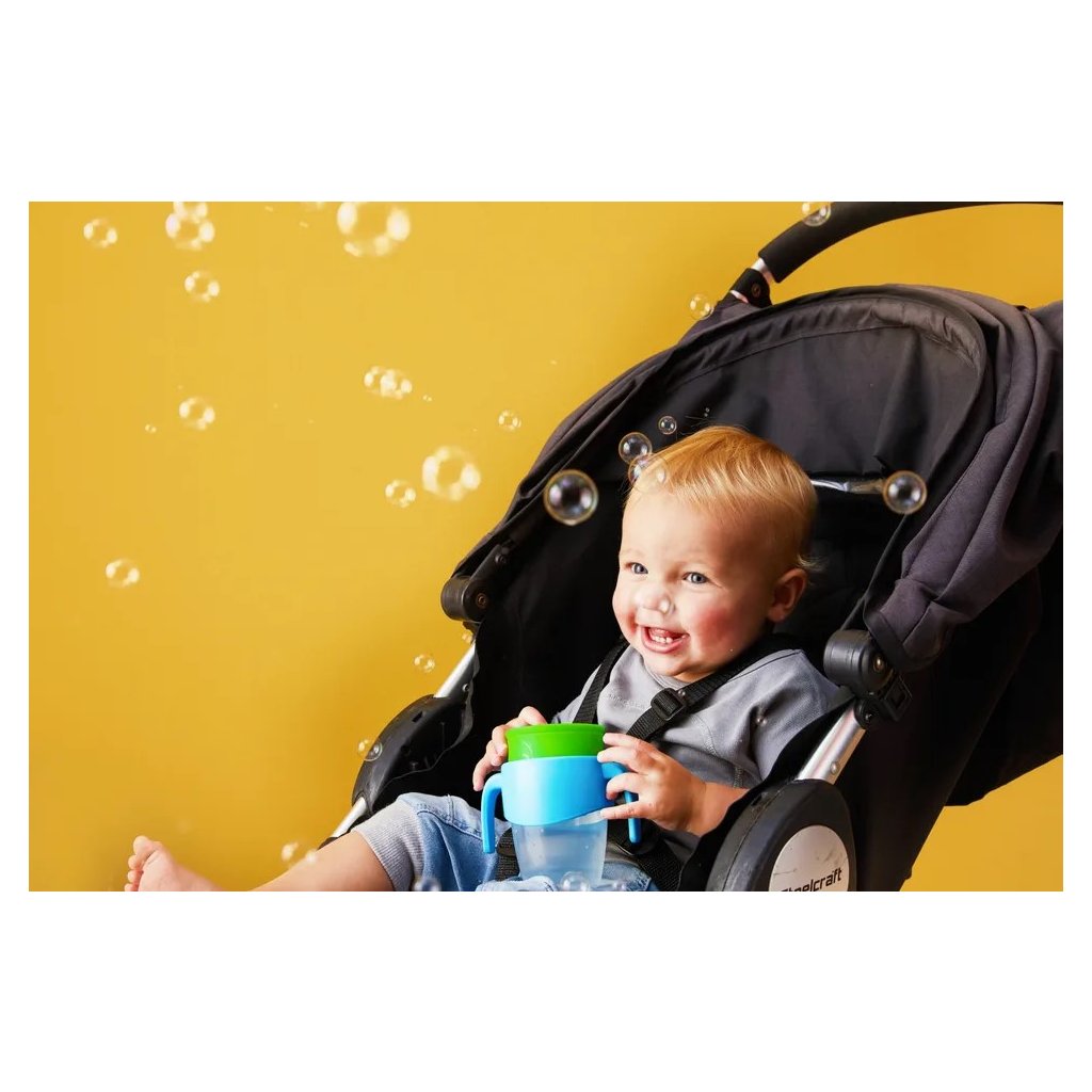 360° netekoucí učící hrneček od značky b.box dovoluje dětem nápoj z hrnečku jen usrkávat, ale hlavně učit se pít díky unikátnímu měkkému silikonovému okraji po celém okraji hrnečku. Měkký silikonový okraj umožňuje řízení průtoku tekutiny z hrnečku přiložením rtů k hrnečku a zabraňuje zbytečnému rozlití tekutiny. Čím pevněji dítě přitlačí rty k okraji, tím více tekutiny poteče. Silikonový okraj zároveň těsní a udržuje hrneček zavřený, když se nepoužívá. Široké rukojeti jsou snadno uchopitelné malými ručičkami a zároveň plní funkci uzavíratelného "víčka". Vhodné pro děti od 6 měsíců. Průhledným víčkem hrnečku mohou děti při pití pozorovat tekutinu v hrnečku, poznávají, jak se tekutina chová při naklonění hrnečku a lépe se naučí pít z běžného nádobí. Tip: Otočný twist-lock design rukojeti poskytuje 2 režimy hrnečku. Režim rukojeti dole je určená pro pitný režim bez zbytečných kapek. Rukojeti nahoře jsou naopak pro cestovní režim, kdy je hrneček zcela zavřený a silikonový okraj schovaný a tedy hygienicky čistý.