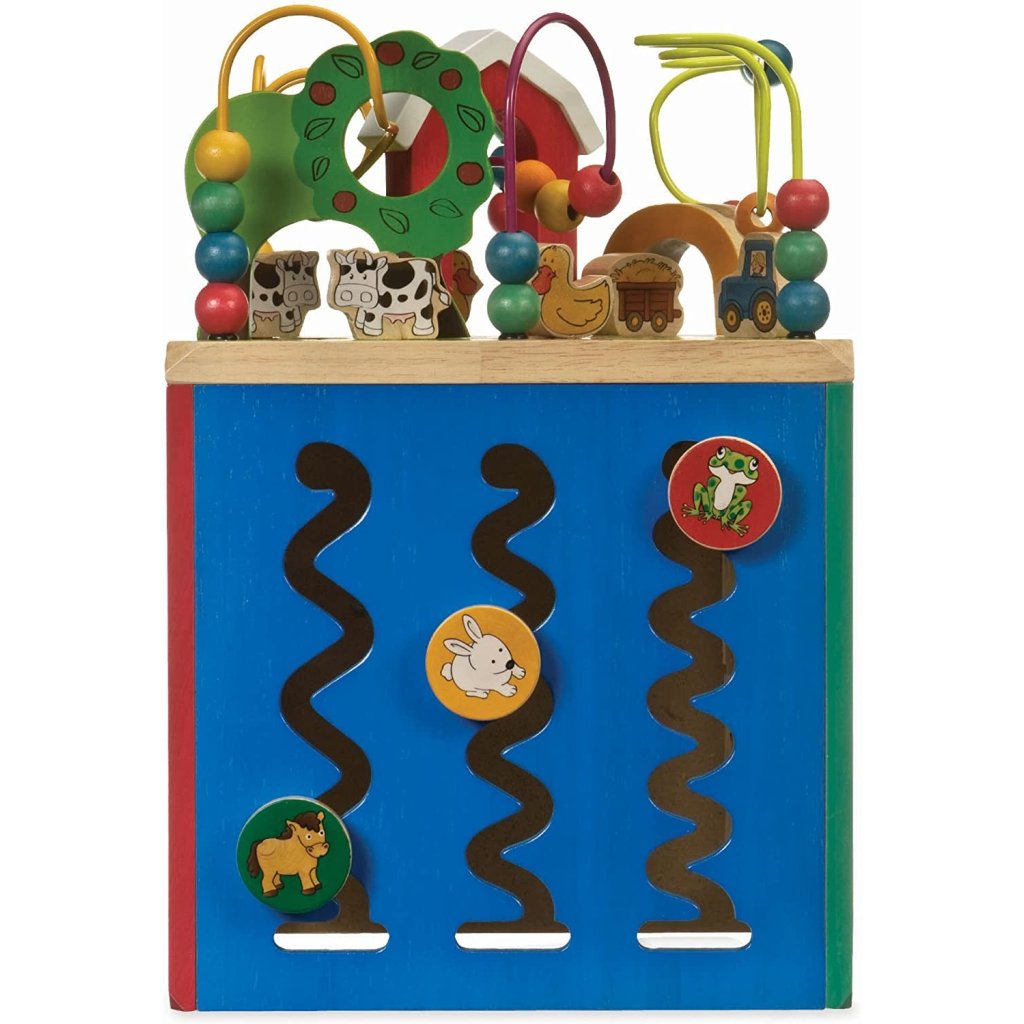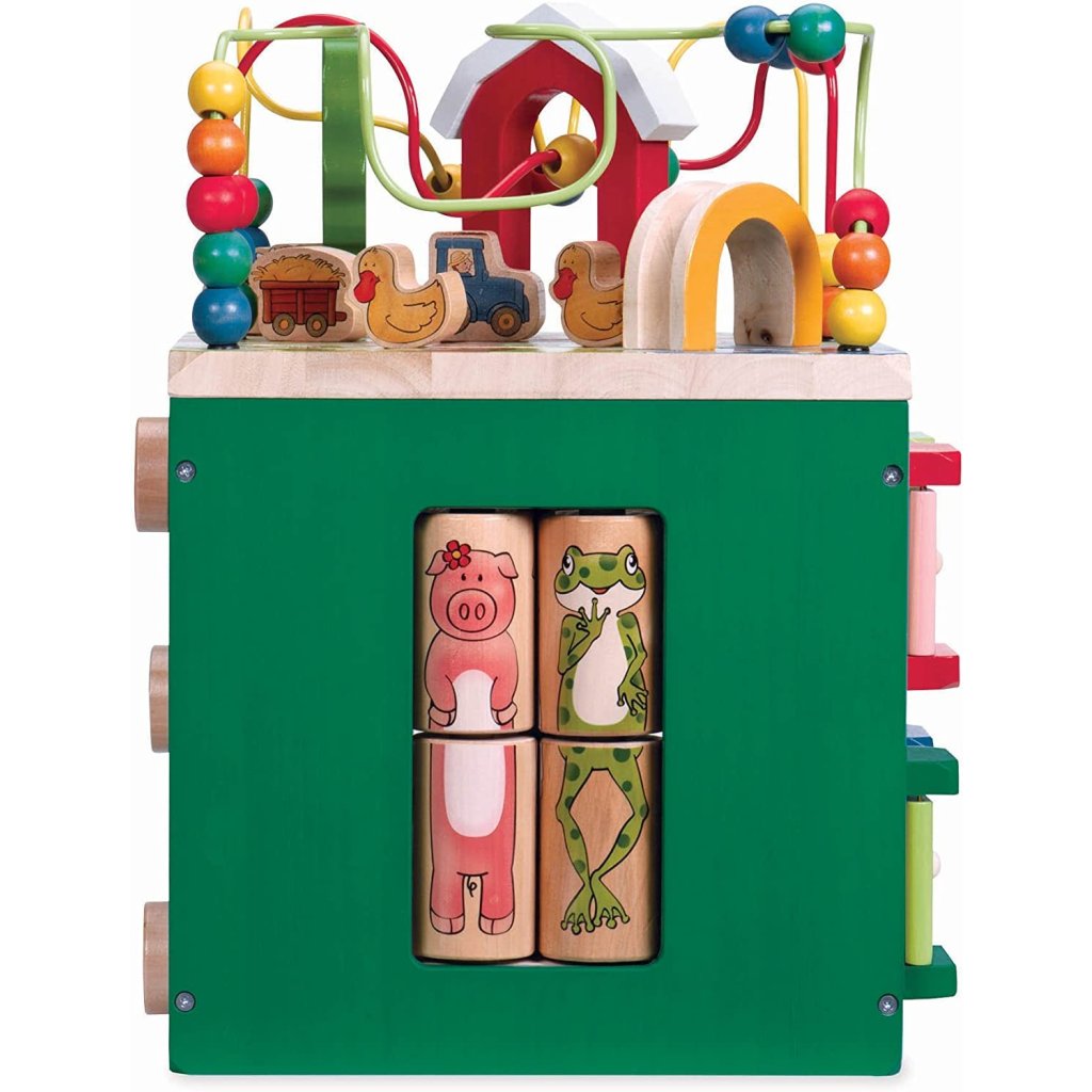Dřevěná krychle s motivy zvířátek z farmy a množstvím pohyblivých různorodých aktivit zajistí vašemu dítěti hodiny zábavy. Každá strana krychle nabízí jiný typ aktivity. Vyrobeno z vysoce kvalitního dřeva s krásnou povrchovou úpravou. Rozměry: 34,3 × 30,5 × 45,1 cm. Vhodné pro děti od 12 měsíců.