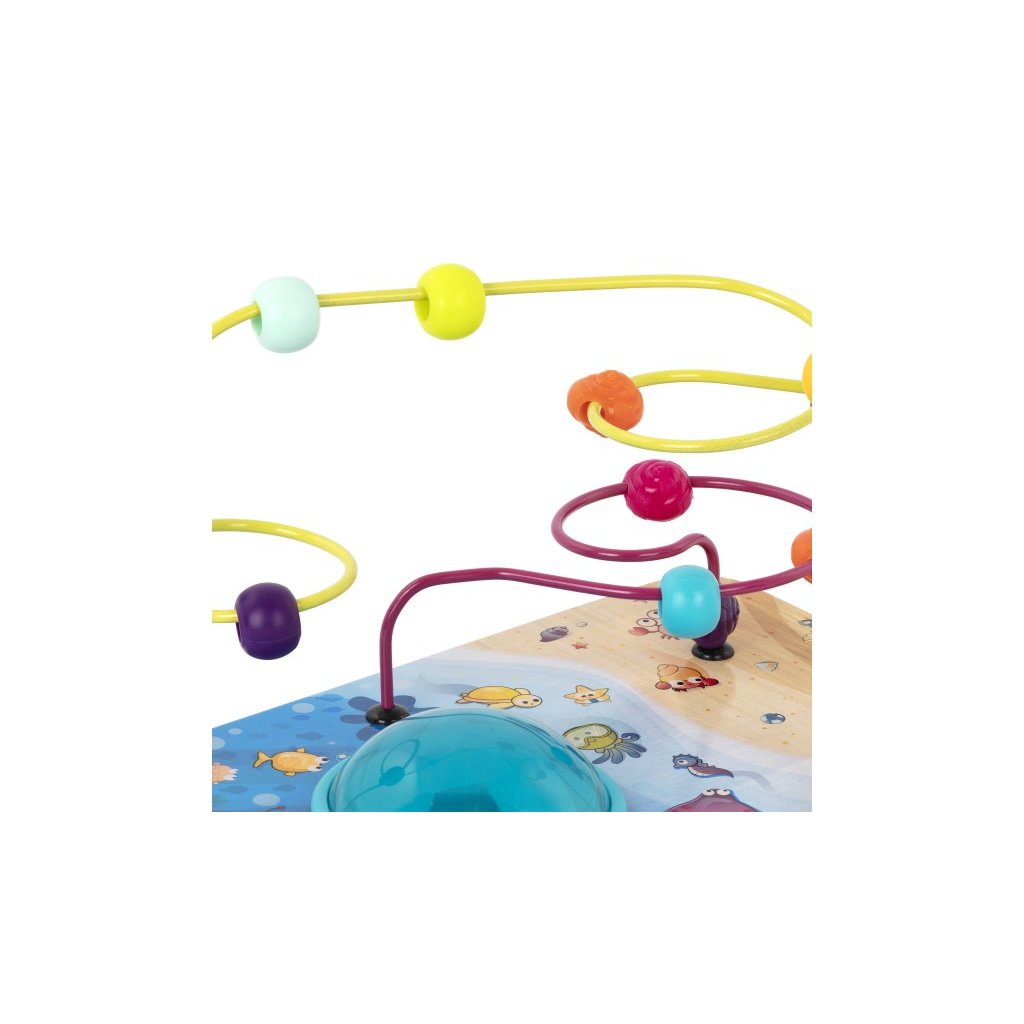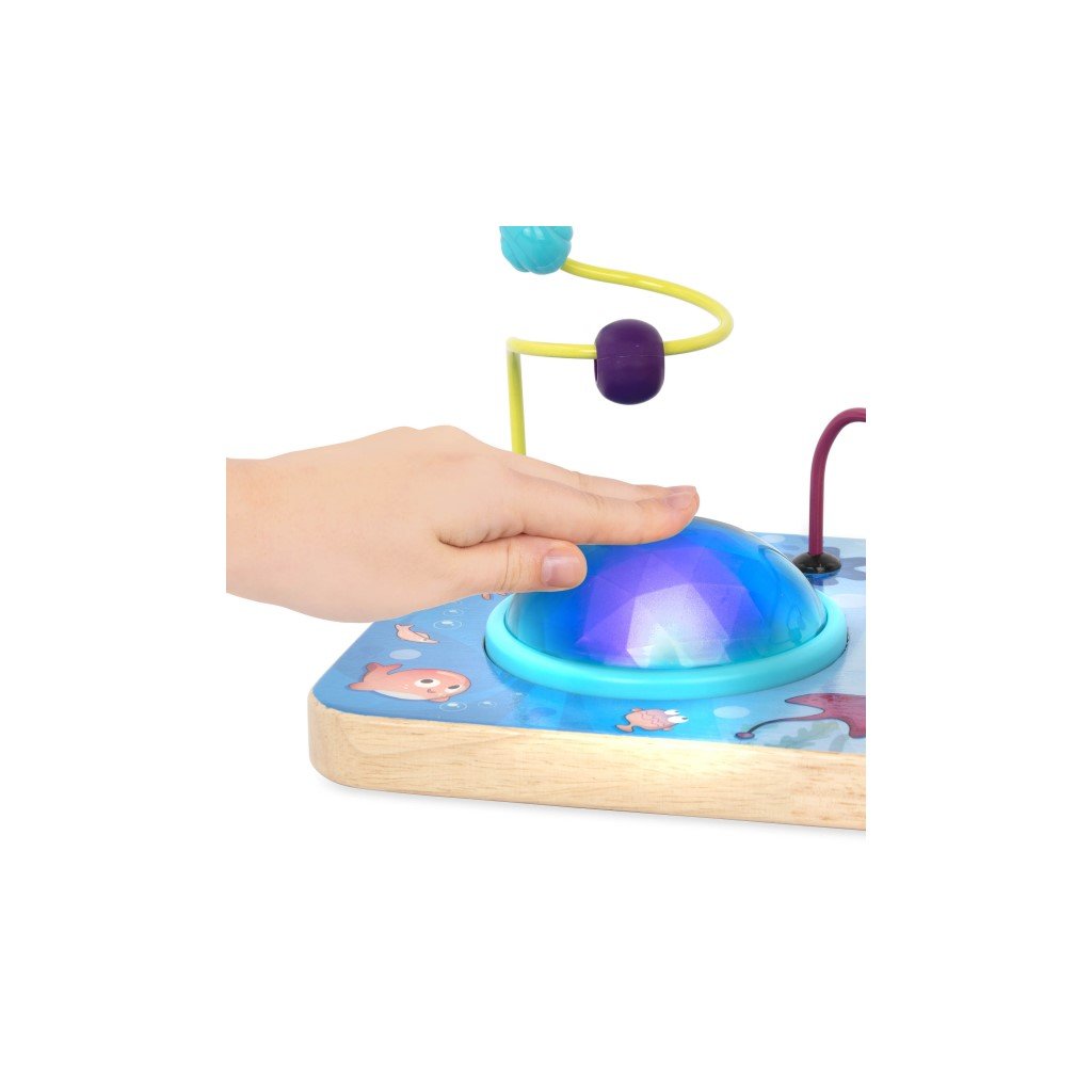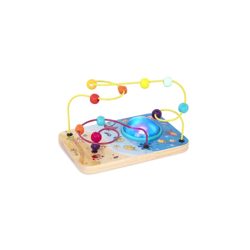 Klasický labyrint s posuvnými korálky v originálním provedení s hudbou a světýlky. Stačí zmáčknout kopuli a rozezní se přímořské melodie A-Mazing Seas doplněné o světelnou show. Krásné ilustrace na základně labyrintu jsou inspirované podmořským světem. Hračka pomáhá rozvíjet jednotlivé smysly dítěte i jeho jemnou motoriku.