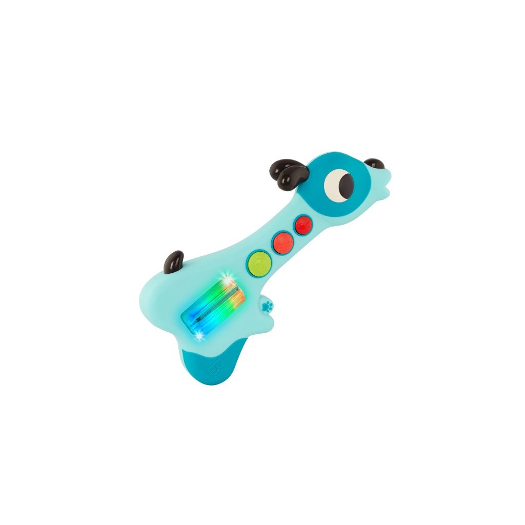 Mini kytara pro nejmenší uvede vaše dítě do úžasného světa hudby. Kytara nabízí 17 různých písniček a veselých zvuků. Tři režimy nabízí na výběr veselé písničky, kytarové riffy a štěkací melodie. Otočné svítící válečky umožňují brnkání, velká tlačítka se snadno mačkají. Možnost nastavení hlasitosti. Hračka pomáhá rozvíjet jednotlivé smysly a jemnou motoriku dítěte. Baterie 3x AAA jsou součástí výrobku. Vhodné pro děti od 6 měsíců.