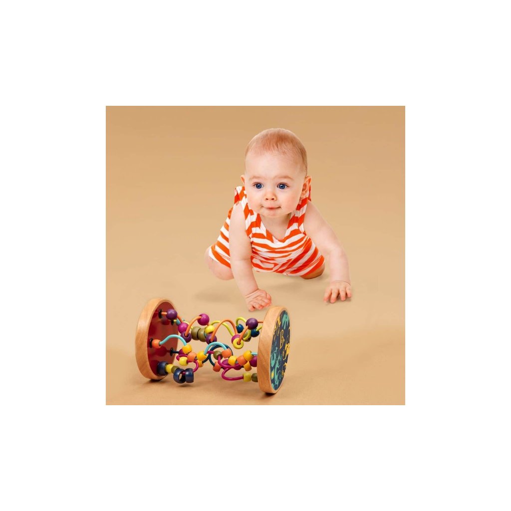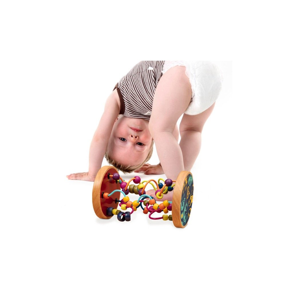 Válec s posuvnými korálky v krásném dřevěném provedení láká k hraní i k pozorování. 48 barevných dřevěných korálků na pěti drátěných drahách se pohybuje při otáčení hračky nebo je dítě posunuje svými prstíky. Hračka pomáhá rozvíjet jemnou motoriku dítěte i koordinaci rukou a očí dítěte. Vhodné pro děti od 18ti měsíců.