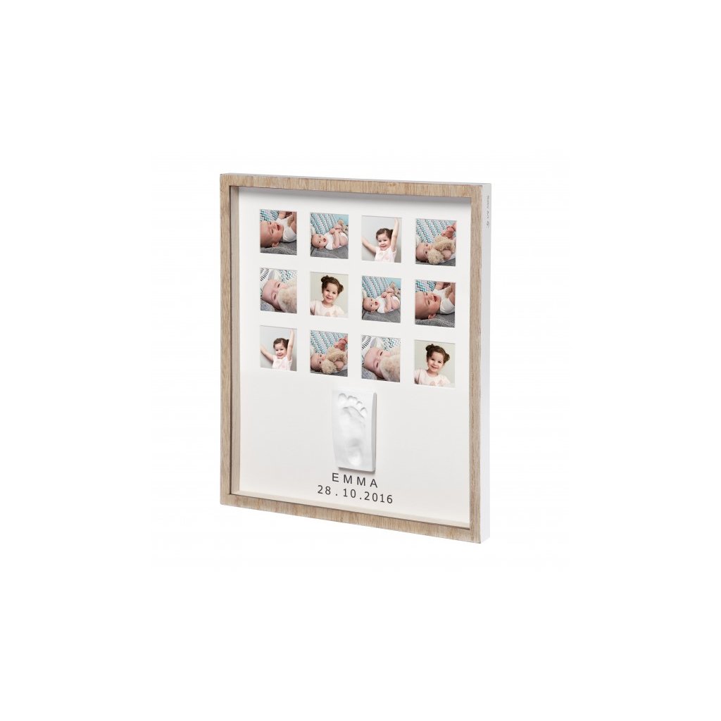 Dřevěný rámeček Baby Art My Very First Year nabízí prostor pro 12 fotografií a otisk ručičky nebo nožičky Vašeho miminka. Vyrobte si krásnou dekoraci, která vám zároveň pomůže uchovat vzpomínky na krásné období od narození vašeho dítěte po jeho první narozeniny. Použití dle přiloženého návodu je jednoduché, rychlé a bez nepořádku. Balení obsahuje rámeček a vše, co potřebujete k výrobě otisku. Výrobek je dermatologicky testován a je pro vaše dítě 100% zdravotně nezávadný.