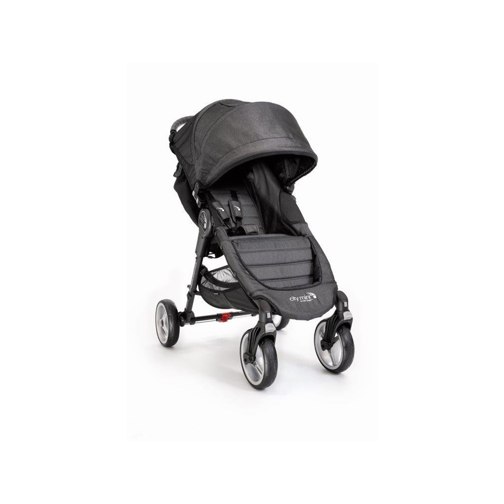 Kočárek City Mini se 4 koly má ventilovaný nastavitelný sedák do polohy ležmo s ochranou proti větru. Stříška kočárku chránící dítě před deštěm i sluncem je velká, vícepolohová s okénky a ventilačními otvory, které se uzavírají na magnet. Kočárek je pro vyšší bezpečnost dětí vybaven 5bodovým bezpečnostním pásem. Kolečka kočárku mají průměr 20 cm a jsou odolná, uchycená na kuličkových ložiscích a ocelových osách. Lze je snadno odejmout. Přední kola jsou odpružená s možností aretace. Pod sedákem se nachází prostorný košík.