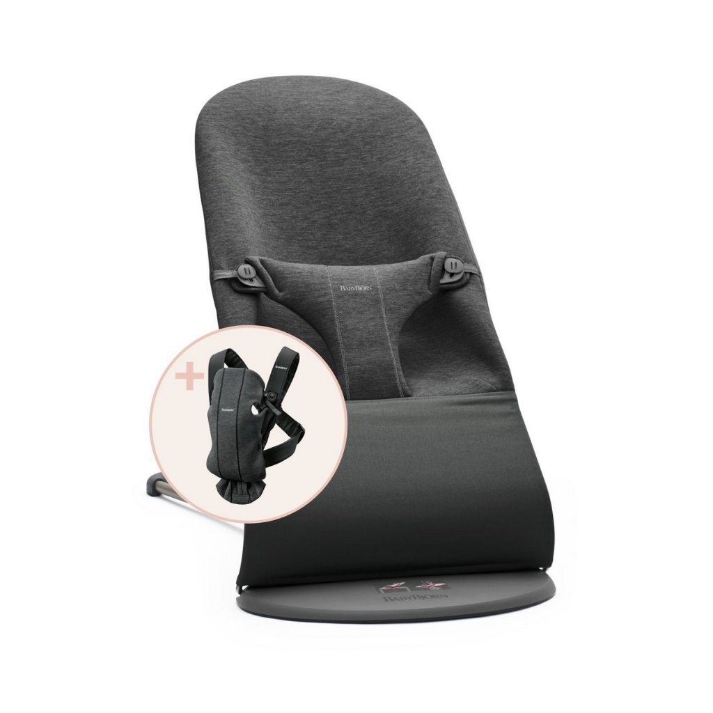 BABYBJÖRN Lehátko Bouncer Bliss Charcoal Grey, 3D Jersey s nosítkem Mini Charcoal Grey, 3D Jersey