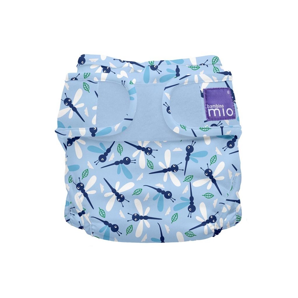 Mnohokrát oceněné plenkové kalhotky Miosoft od Bambinomio jsou super měkké a elastické, takže drží i těm nejaktivnějším miminkům! Jen jedna velikost originální plenky a dvě velikosti plenkových kalhotek (vel. 1 do 9 kg, vel. 2 od 9 kg) budou stačit od narození do doby, kdy bude vaše děťátko chodit na nočník. Díky svému zapínání na suchý zip je práce s nimi velice rychlá, jednoduchá a umožňuje přizpůsobení každému dítěti. Tvar suchého zipu brání vytváření ostrých rohů a tak chrání před odřením jemné dětské pokožky. Vnitřní polyuretanová vrstva propouští menší molekuly plynů a par avšak zabraňuje průchodu kapalin a tekutin. Dítě se tak nezapaří, ale ani neznečistí své okolí. Pozor působení dětských olejíčků snižuje životnost nepropustné vrstvy. Měkké lemy okolo nožiček a pasu zabraňují odření choulostivé pokožky miminka. Elastické manžety okolo nožiček a pasu zabezpečují přiléhavé nastavení a pomáhají zabraňovat prosakování. Barva kalhotek je modrá s motivem vážek.