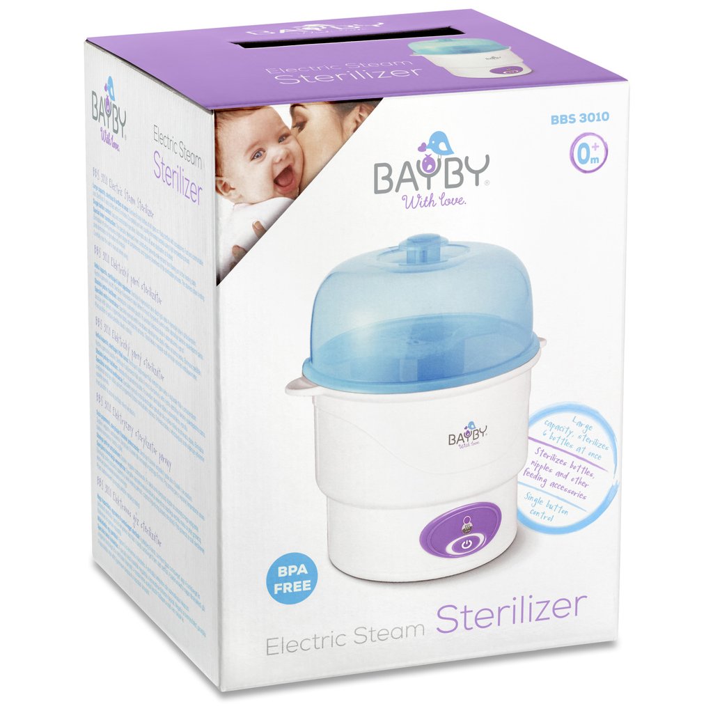 Dokonalá hygiena je základem pro zdravý vývoj novorozenců zejména v prvních týdnech života, kdy jeho imunitní systém ještě není zcela připraven na nástrahy bakterií a myčka nádobí není dostatečná. Bakterie kompletně a rychle odstraní horkou párou elektrický parní sterilizátor BAYBY BBS 3010.