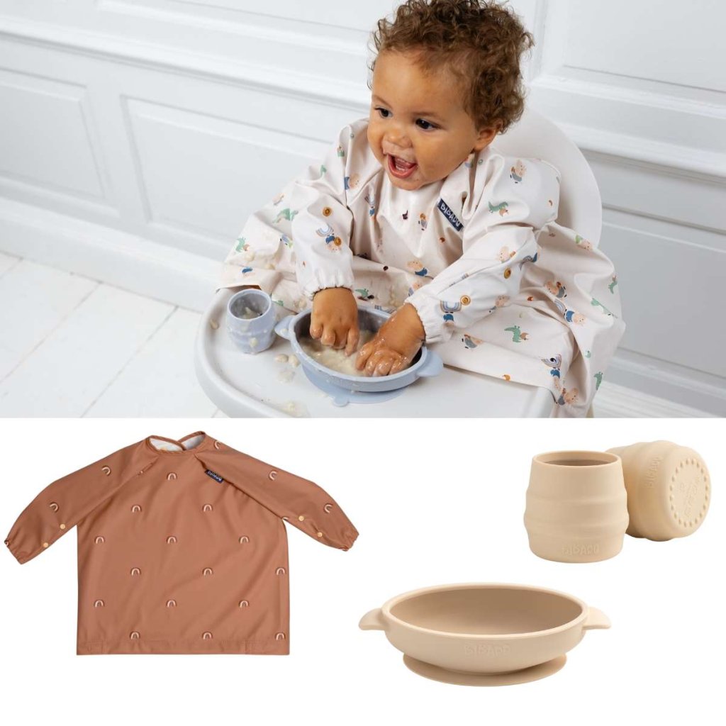 Bibado jídelní set – bryndák, miska s přísavkou a hrneček Sippit™ – je kompletní výbava pro první samostatná jídla a pití vašeho dítěte. Podporuje rozvoj motorických dovedností, učí děti jíst a pít samostatně a zároveň usnadňuje rodičům úklid po jídle. Všechny komponenty jsou vyrobeny z bezpečných materiálů bez BPA a certifikované pro zdravotní nezávadnost.