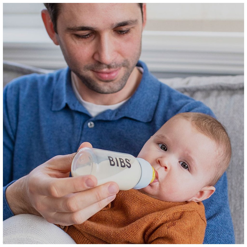 BIBS Baby Bottle skleněné láhve jsou zárukou, že miminka přijdou při krmení do kontaktu jen s kvalitním prémiovým a bezpečným materiálem. Jsou vyrobeny z prvotřídního borosilikátového skla, které do nápojů neuvolňuje žádné škodlivé látky či mikroplasty, je mimořádně trvanlivé a extrémně odolné vůči teplu. Kromě nejkvalitnějších materiálů vynikají BIBS kojenecké láhve také svým nadčasovým retro designem, ve kterém je dokonale propracovaný každý detail. Součástí balení jsou praktické doplňky v oblíbených BIBS barvách.