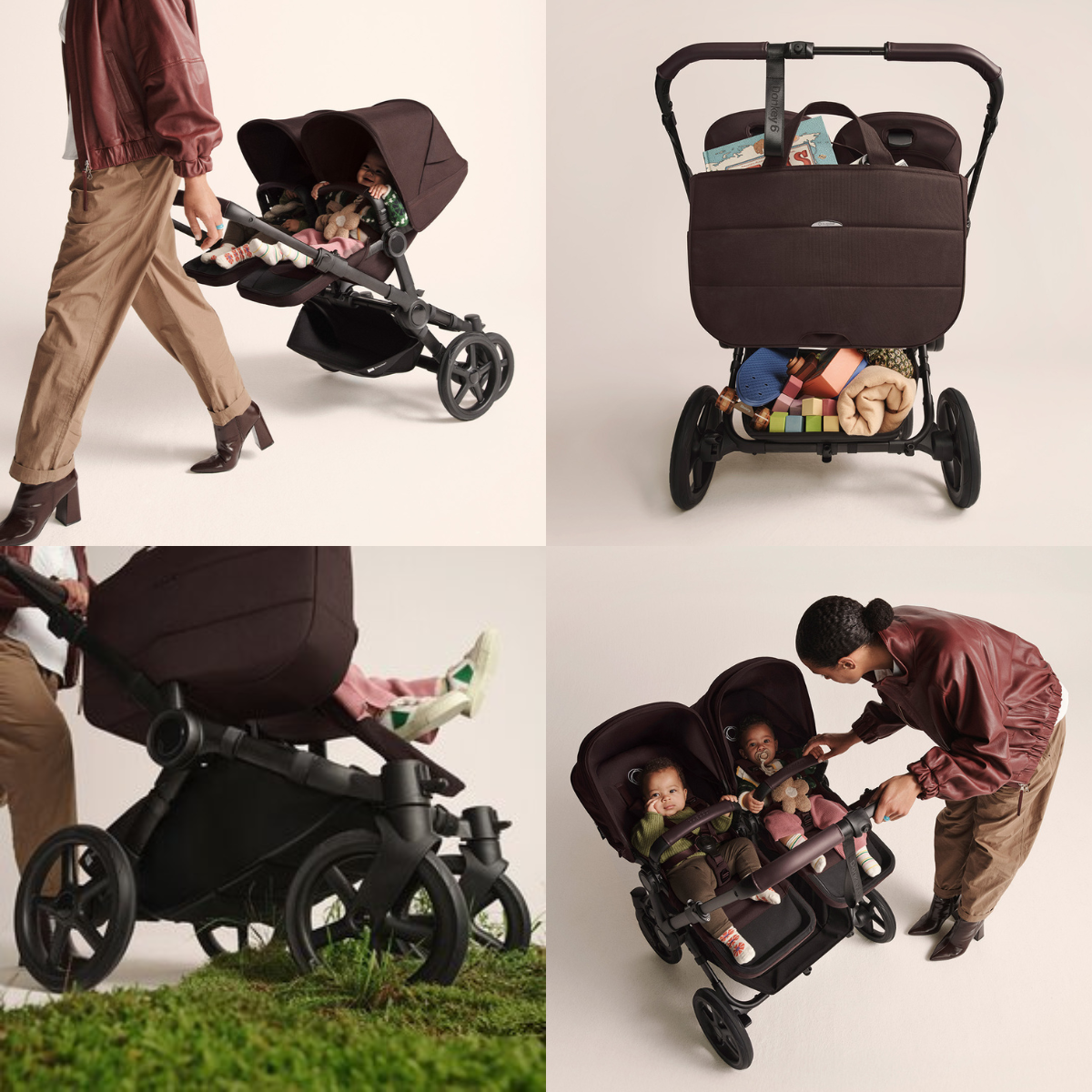 Nový design kol a odpružení zlepšují manévrovatelnost a celkový komfort jízdy, i když je kočárek naložen dvěma dětmi.