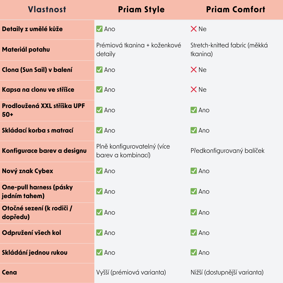 Cybex Priam Style vs. Priam Comfort – přehledné srovnání