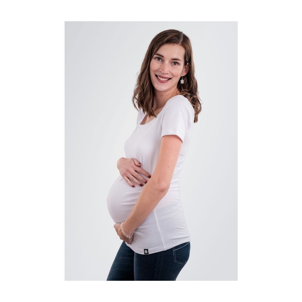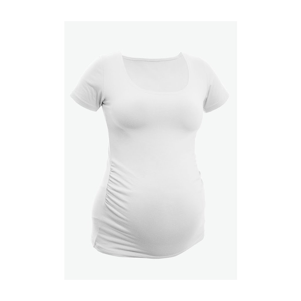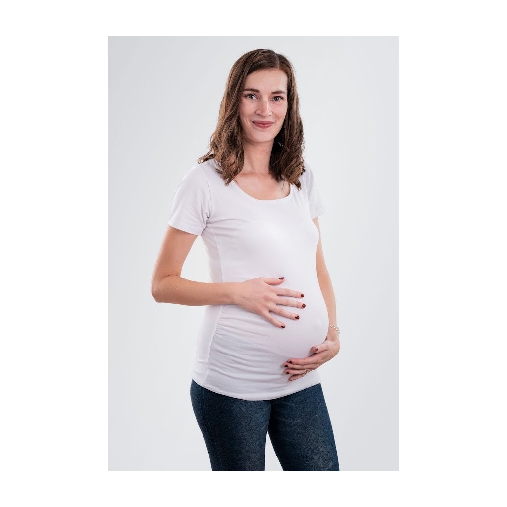 Velmi pohodlné a elastické těhotenské tričko, které by nemělo chybět ve Vašem šatníku. Díky nařasení po stranách, elasticitě a velmi praktickému střihu ho můžete nosit během celého těhotenství i po něm.Toto tričko krásně zvýrazní Vaše těhotenské bříško. Je to jeden ze základních kousků těhotenského šatníku, který určitě využijete. Řasení po stranách umožní pojmout opravdu velké bříško, zároveň po porodu rafinovaně schová poporodní nedostatky. Kulatý výstřih navíc umožňuje bezproblémové kojení.