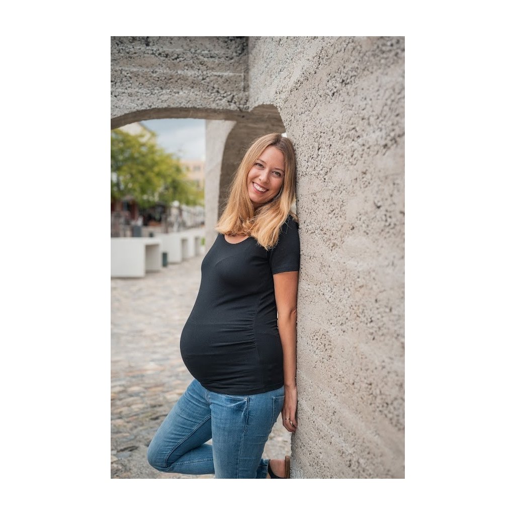 Velmi pohodlné a elastické těhotenské tričko, které by nemělo chybět ve Vašem šatníku. Díky nařasení po stranách, elasticitě a velmi praktickému střihu ho můžete nosit během celého těhotenství i po něm.Toto tričko krásně zvýrazní Vaše těhotenské bříško. Je to jeden ze základních kousků těhotenského šatníku, který určitě využijete. Řasení po stranách umožní pojmout opravdu velké bříško, zároveň po porodu rafinovaně schová poporodní nedostatky. Kulatý výstřih navíc umožňuje bezproblémové kojení.