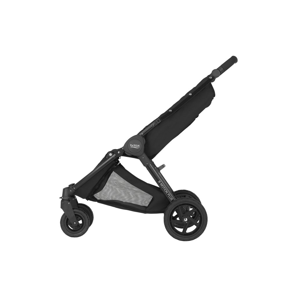 Podvozek B-Motion 4 Plus je vyroben z hliníku, tudíž je lehký, avšak stabilní a pevný. Dalším prvkem, který ocení především "městské maminky", je jeho snadné skládání. Automatický skládací mechanismus umožňuje složení jednou rukou, a to do velmi kompaktních rozměrů. Zadní kola kočárku jsou skvěle odpružena, a tak umožňují hladkou jízdu i po nerovném povrchu. Přední kolečka jsou otočná a lze je zaaretovat. Kola jsou rychloupínací. Kočárek má měkce polstrovanou rukojeť a praktický košík.