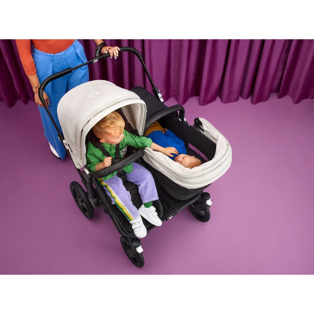 Duo nástavec vám umožní přeměnit kočárek Bugaboo Donkey5 pro jedno dítě na verzi pro dvě děti, a to jak pro sourozence (verze Duo), tak i pro dvojčata (verze Twin). Stačí pouze teleskopicky rozšířit podvozek kočárku a nasadit na něj příslušné části rozšiřovacího setu.