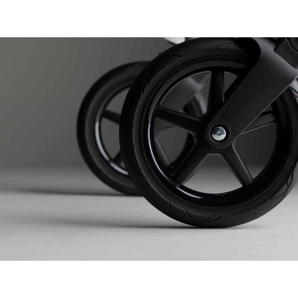 Podvozek kočárku Fox je robustní a silný, avšak zároveň ultralehký a kompaktní. Celková hmotnost kočárku činí neuvěřitelných 9,9 kg (povozek, kola a sedačka), což zaručuje maximálně snadné zvedání, přenášení a skládání. Kočárek Fox je vybaven čtyřmi velkými pěnovými koly (o průměru 8,5 a 12 palců), která hravě zdolají každý terén a navíc bez obav o píchnutí. Díky předním otočným kolečkům s možností aretace je zajištěna snadná manipulace s kočárkem a pohodlná jízda. Kola kočárku lze snadným pohybem přeměnit na pozici dvou kol, která je ideální pro jízdu v písku nebo na sněhu. Na podvozek lze pomocí adaptérů snadno připevnit autosedačku skupiny 0+. Rukojeť kočárku je výškově nastavitelná. Podvozek kočárku se včetně sportovní sedačku složí vcelku do kompaktní velikosti, ve které sám stojí. Na podvozku se také nachází snadno přístupný velkorysý nákupní koš s úložnými kapsami, který má nosnost 10 kg. Samozřejmostí je nožní brzda. Podvozek je vybaven integrovanými upevňovacími body, které slouží ke snadnému připojení doplňků, jako je slunečník, držák na nápoje nebo stupátko pro sourozence. Není tak potřeba dokupovat speciální adaptéry.