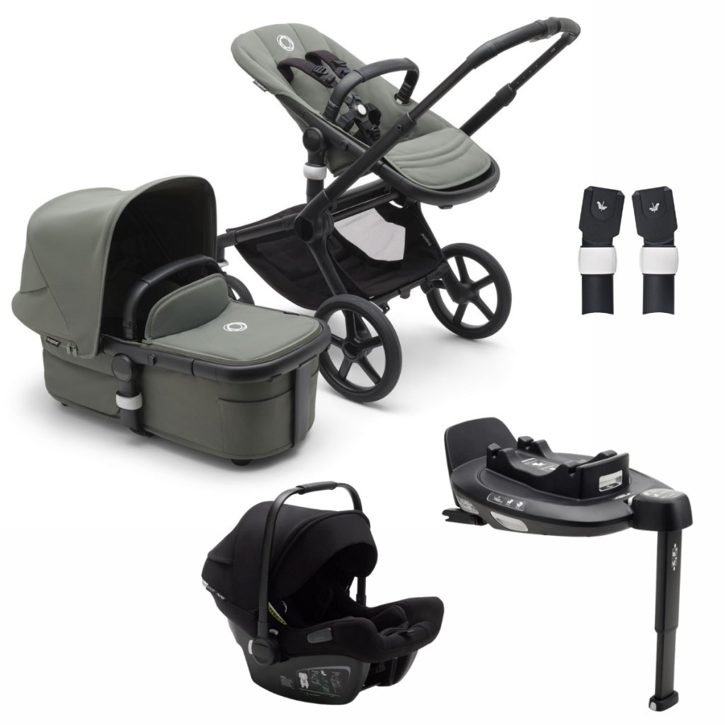 BUGABOO Fox5 Kočárek Black/Forest Green + Bugaboo Turtle Air by Nuna + 360 base + adaptéry