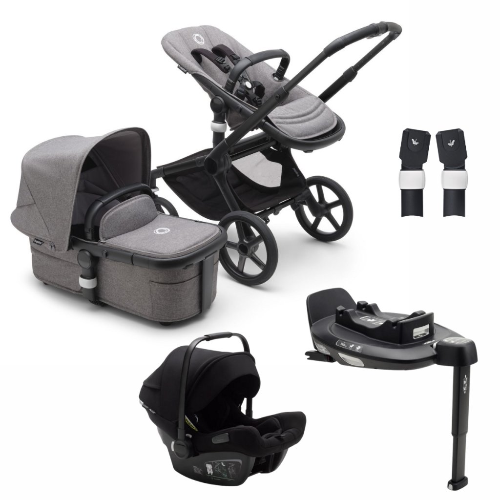 BUGABOO Fox5 Kočárek Black/Grey Melange + Bugaboo Turtle Air by Nuna + 360 base + adaptéry