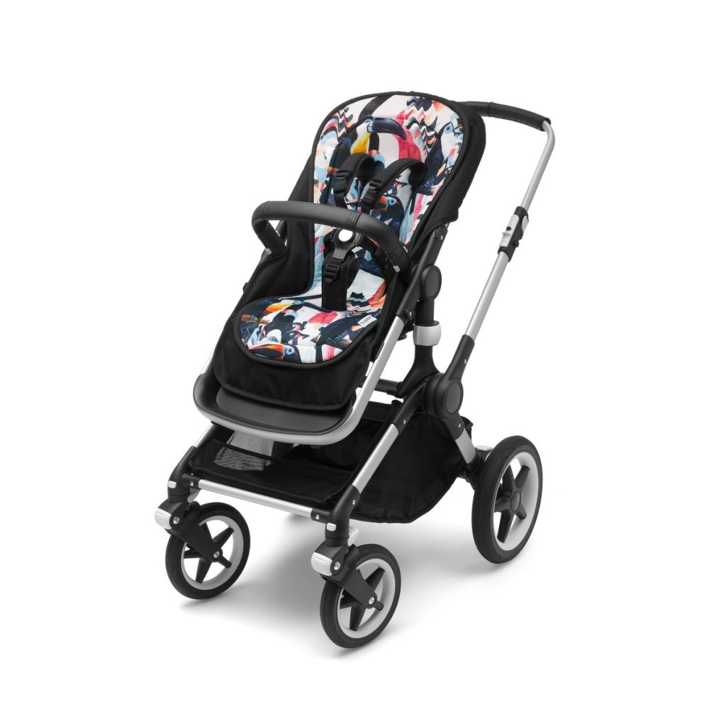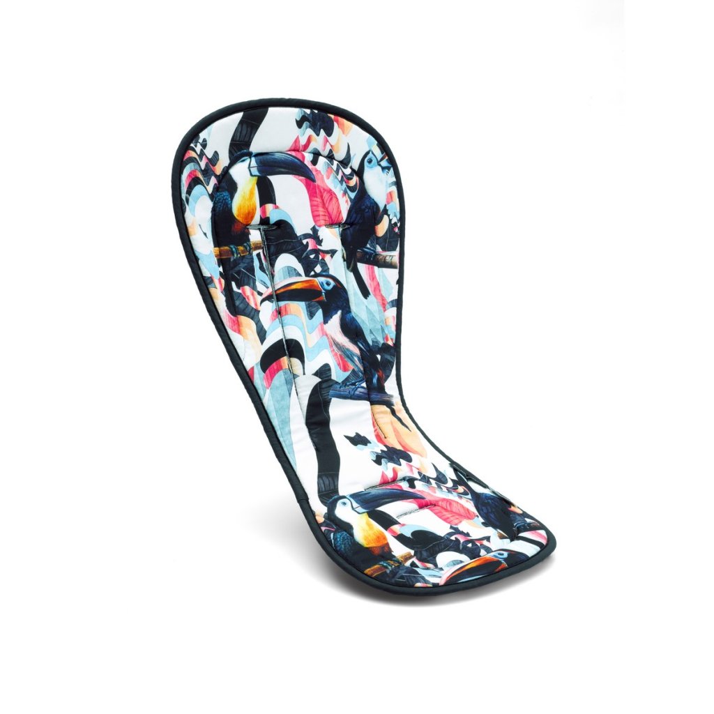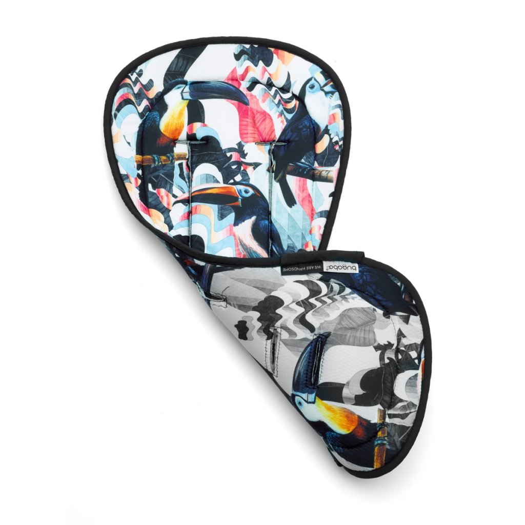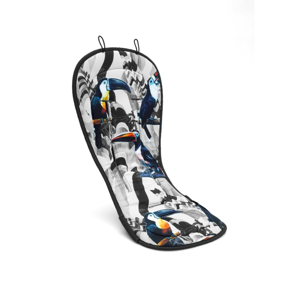 Prodyšná podložka do kočárků Bugaboo odvádí v horkých dnech od dítěte vlhkost a udržuje je tak v suchu a pohodlí. Kromě toho zvyšuje díky měkkému polstrování i komfort sezení v kočárku. Podložku lze použít na všechny kočárky Bugaboo. Lze ji prát v pračce. Podložka má černobílý vzor s motivem tukana.