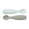 Tato sada dvou silikonových lžiček je navržena s půvabným květinovým motivem, který umožňuje dětem stolovat stylově. Lžička má ergonomickou rukojeť, která je přizpůsobena dětské ruce, a na špičce tři tečky, které zabraňují tomu, aby si dítě lžičku vložilo příliš hluboko do úst. Tento design pomáhá dítěti intuitivně pochopit, kde lžička končí, a přispívá tak k bezpečnému stolování. Krásný design a barvy lžiček tvoří stylový doplněk rodinného jídelního stolu. Lžičky perfektně ladí s naší silikonovou řadou nádobí. Silikon je hypoalergenní a sterilní materiál, ideální pro kontakt s potravinami. Je snadno omyvatelný, a to buď ručně, nebo v myčce na nádobí. Tato sada lžiček je nezbytností pro moderní rodinný život.