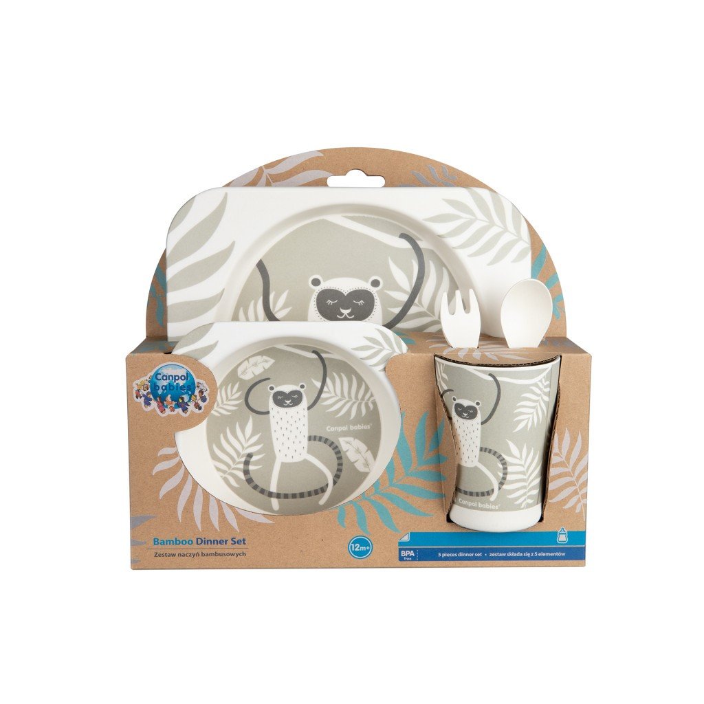 Bambusový jídelní set pro děti od jednoho roku je vyroben především z velmi lehkého a odolného bambusového vlákna, které je biologicky rozložitelné. Kolekce obsahuje hrníček (200 ml), misku (300 ml), dvoudílný talířek (300 ml) a příbor v podobě lžičky s vidličkou. Zdobeno poutavým a originálním designem v motivu lemura. Produkty lze umývat v myčce na nádobí. Zabaleno v dárkovém balení.