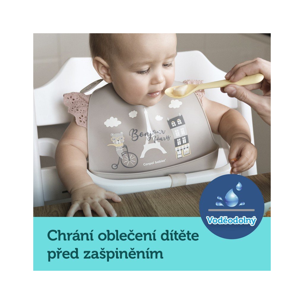 CANPOL BABIES Bryndák silikonový s kapsou Bonjour Paris béžový