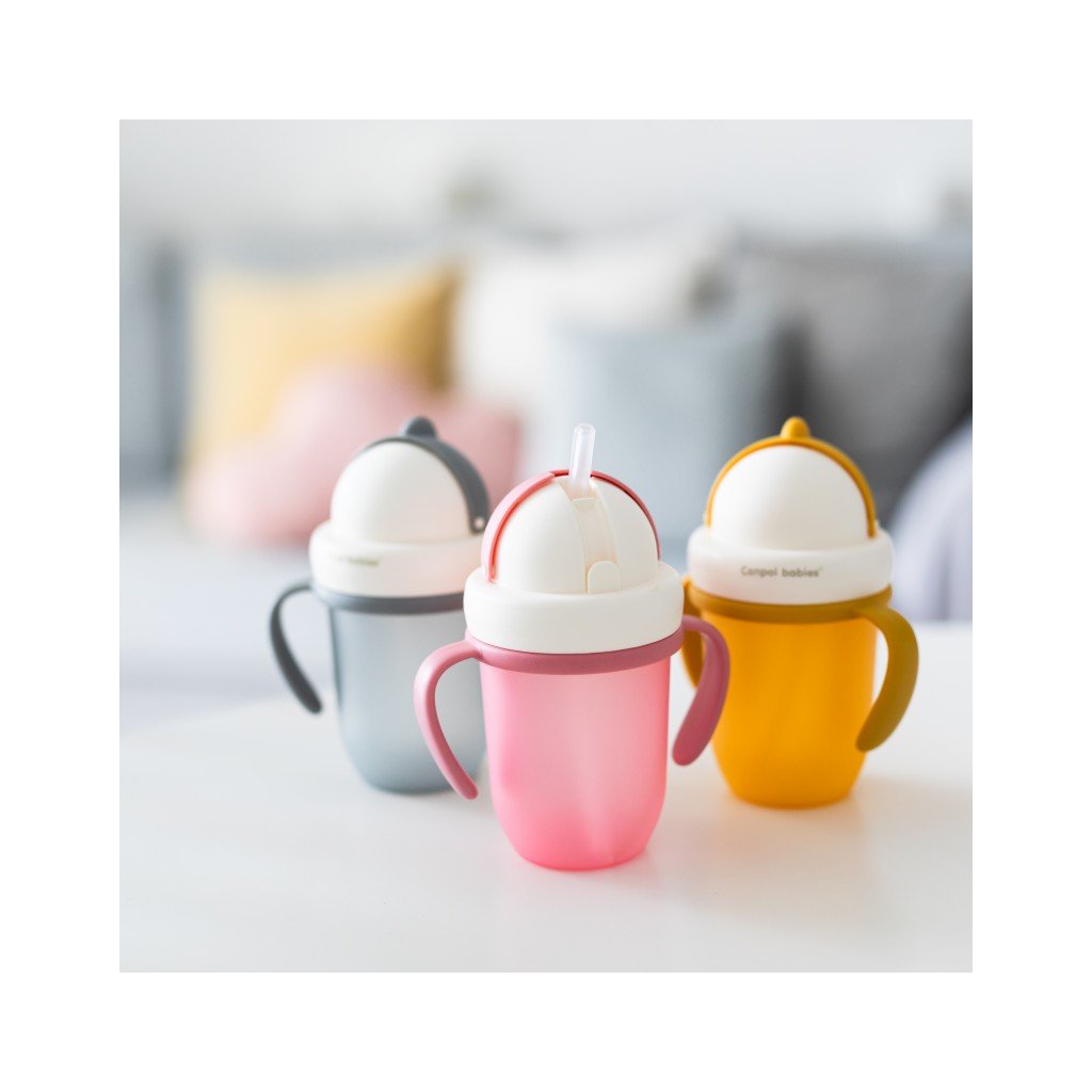 CANPOL BABIES Hrneček se silikonovou slámkou MATT 210 ml růžový