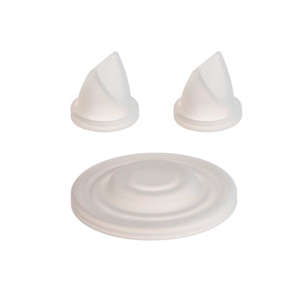 Sada náhradních dílů obsahuje silikonovou membránu a 2 kusy silikonových zpětných ventilů. Komponenty sady jsou vhodné pro bezdrátovou elektrickou odsávačku do podprsenky Hands-free. Silikonové prvky, které přijdou do kontaktu s mlékem, lze dezinfikovat v elektrickém sterilizátoru.
