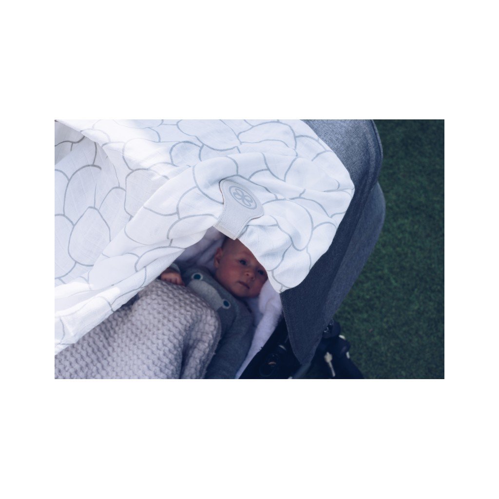 - zafixujte plenku tak, aby fungovala jako přikrývka při kojení, ochrana před sluncem nebo jako bryndák