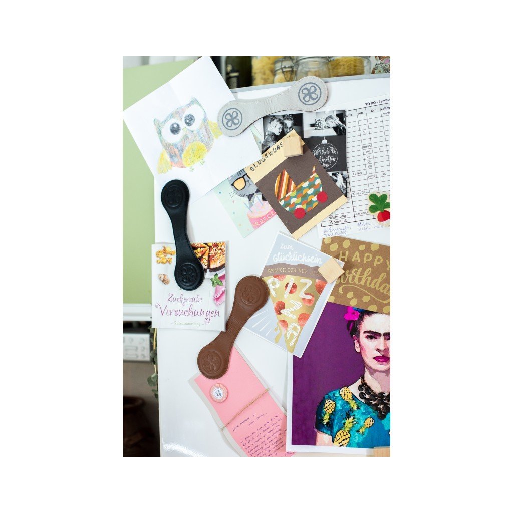 Multifunkční magnetické oboustranné klipy v hnědé barvě, vyrobené z kvalitní kůže. Klipy Cloby jsou multifunkční a pomohou vám při mnoha příležitostech! Klip obsahuje 2 magnety a na jedné straně je pokryt kvalitní kůží v hnědé barvě a na druhé silným plátnem v šedé barvě.