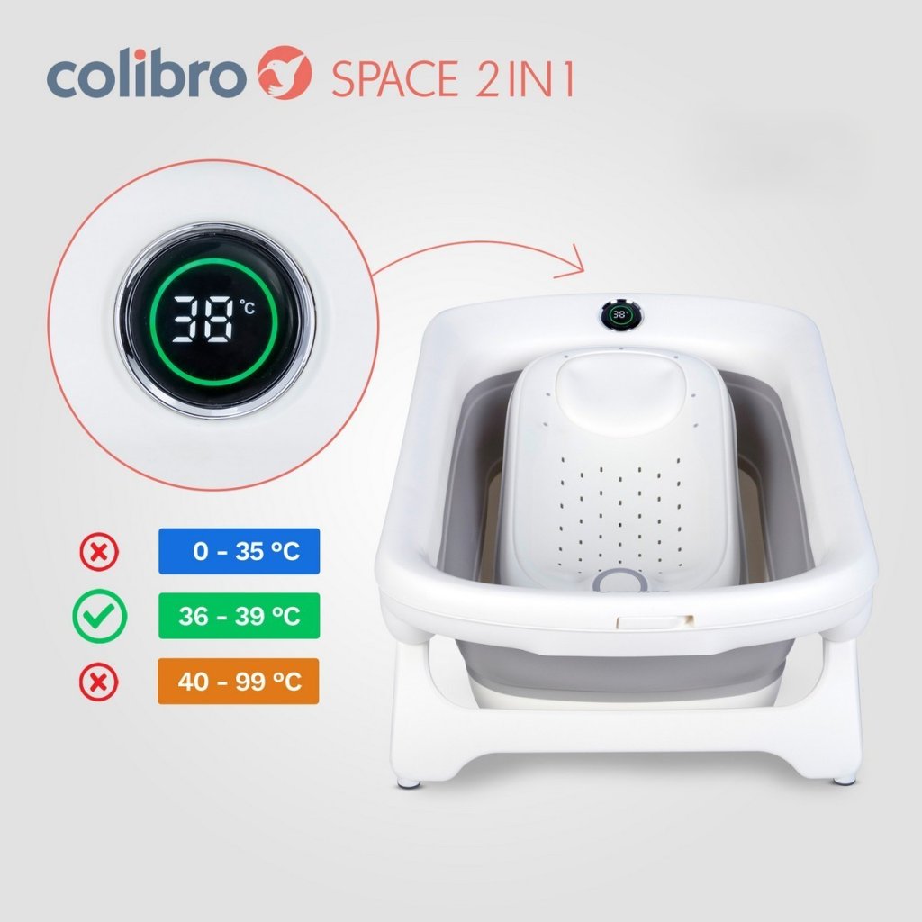 COLIBRO SPACE 2v1 je extra prostorná skládací dětská vanička, která roste s vaším dítětem od narození až přibližně do 3 let. Součástí balení je také skládací koupací lehátko pro miminka do 6 měsíců, díky čemuž získáte praktické řešení 2v1 pro každodenní koupání doma i na cestách. Promyšlený design, bezpečné materiály a chytré funkce vám zajistí pohodlí a klid při každé koupeli.