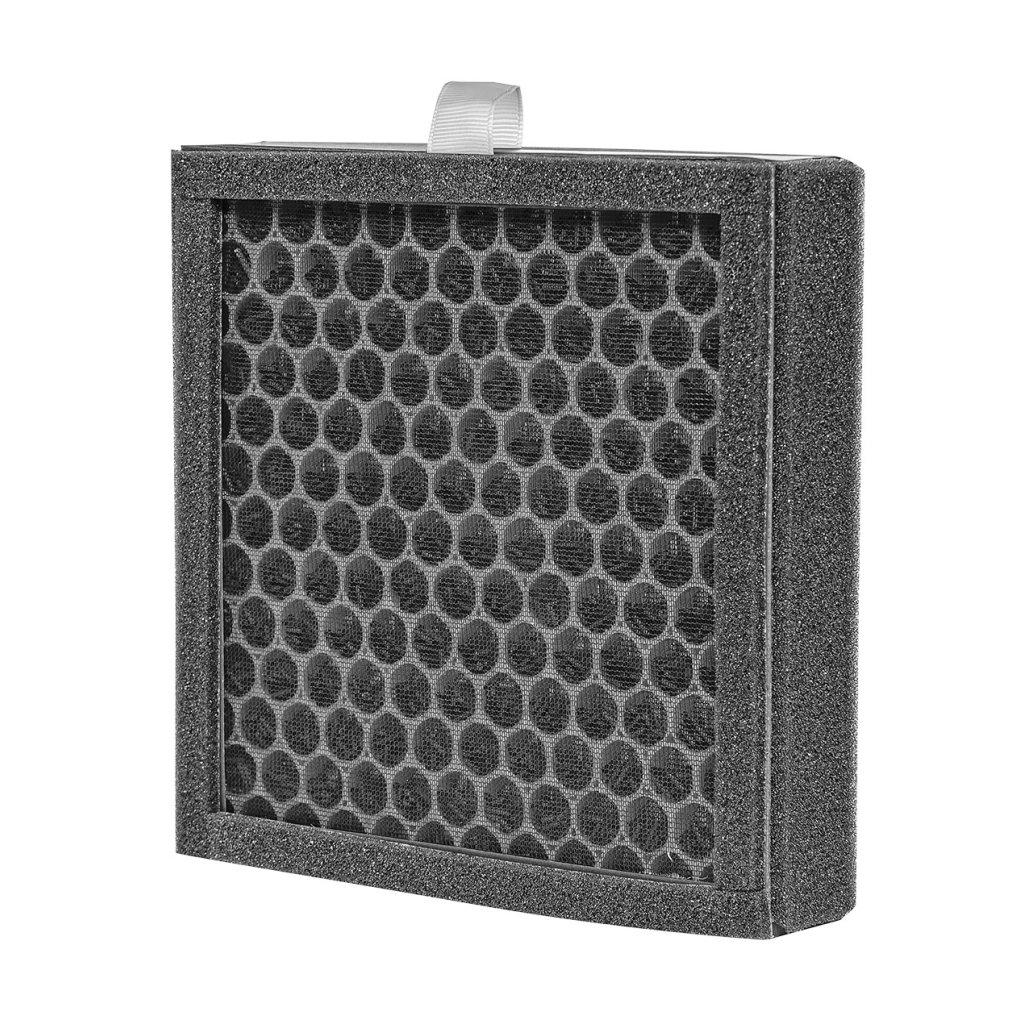 - Uhlíkový filtr – pohlcuje jedovaté, dusivé a další zapáchající plyny a výpary, jako např. formaldehyd, benzen nebo cigaretový kouř