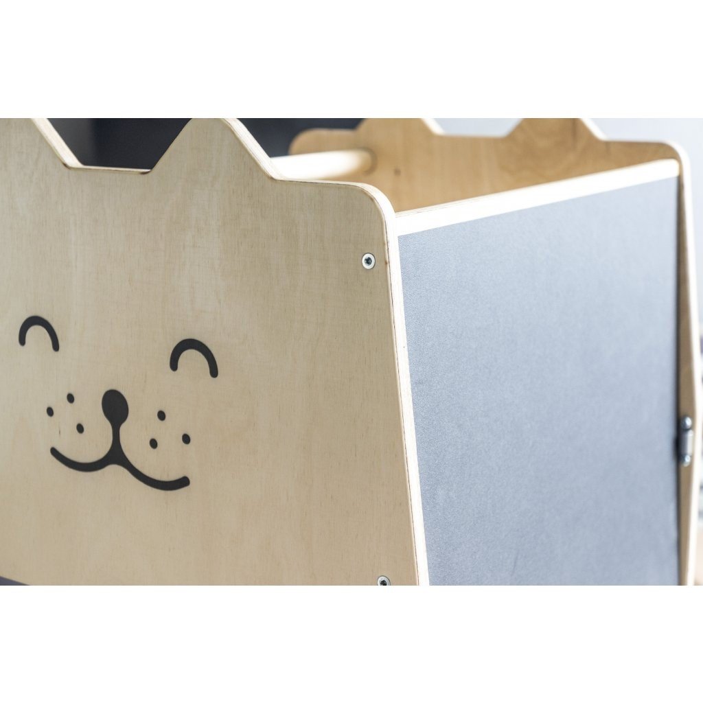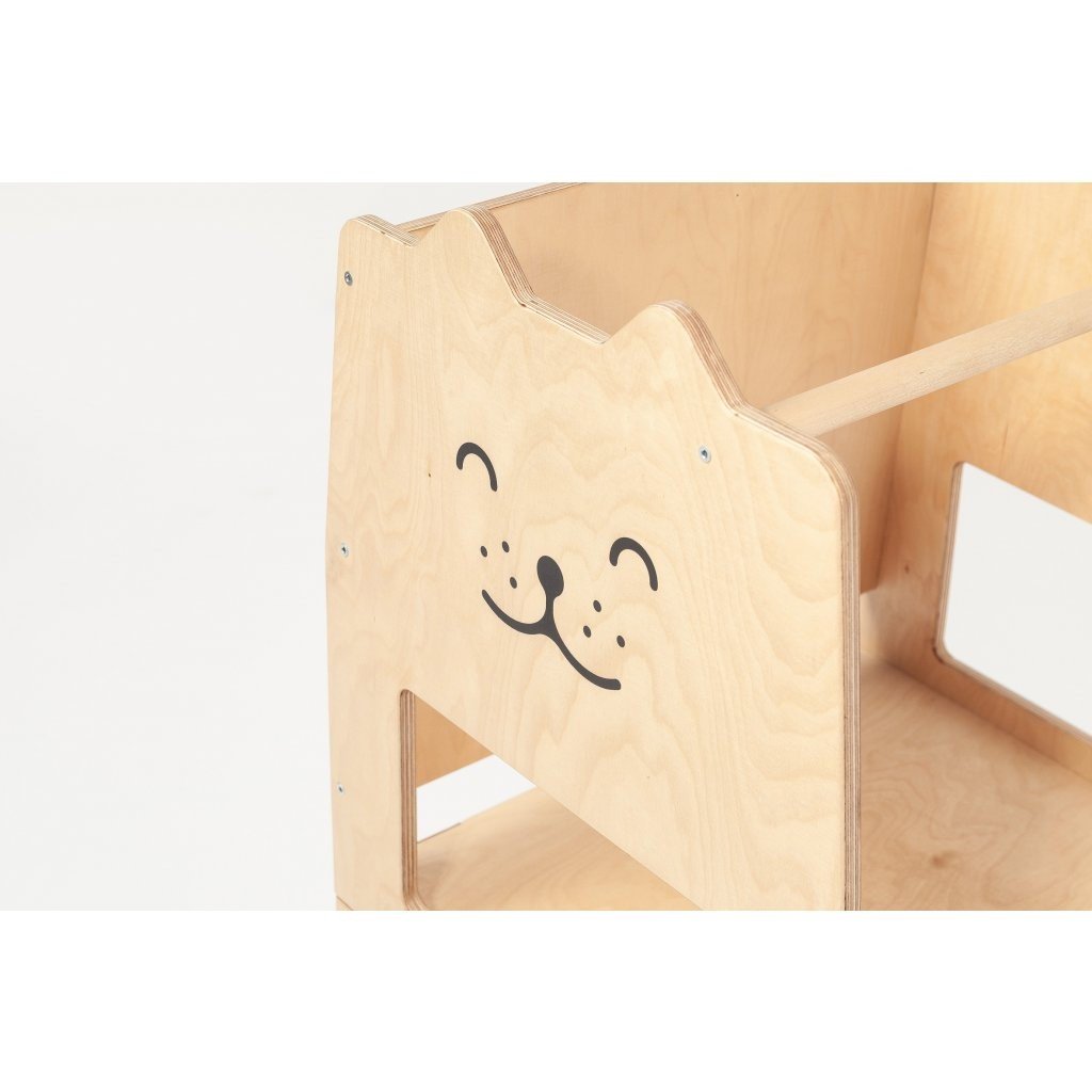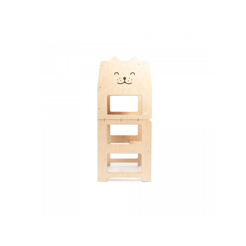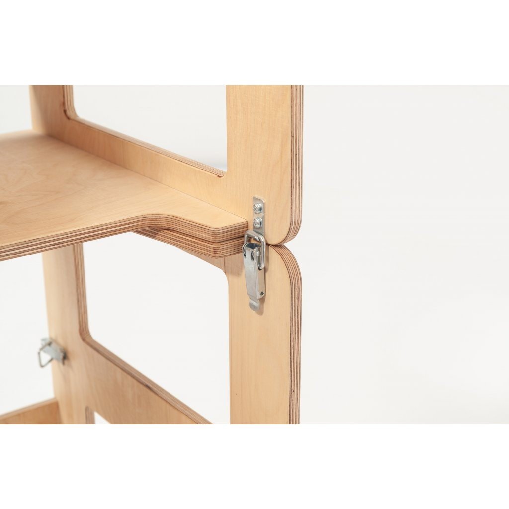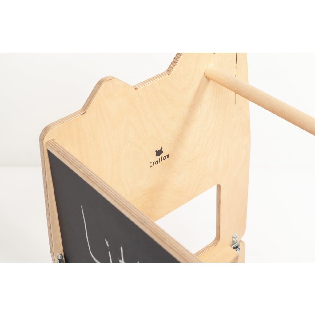 Učící věž Craffox je víceúčelová. Slouží nejen jako kuchyňská učící věž, ale snadnou přestavbou se z věže stane stůl se židlí pro jedno nebo dvě děti. Na zadní straně věže je křídová tabule, na které mohou děti rozvíjet svoje výtvarné umění. Přestavba věže je jednoduchá. Stačí odklopit boční spony a jednou rukou sklopit horní část. Rázem se z učící věže Craffox stane stůl, který mohou využívat i dvě děti současně. Učící věž Craffox je zcela ideální do malých bytů, kde bude plnit několik funkcí najednou a nemusíte tak kupovat učící věž, dětský stůl, židli, případně tabuli zvlášť. Spony slouží k upevnění věže v obou polohách. Přestavovat věž z jedné pozice do druhé mohou pouze rodiče. Učící věž nevyužijete pouze v kuchyni, ale i při dalších činnostech jako je čištění zubů, mytí rukou, pomáhání tatínkovi v dílně nebo při podávání hraček, které jsou v horních policích. Věž je opatřena speciálními ochrannými bočnicemi, které chrání dítě před nechtěným pádem. Dítko, které už umí lézt po čtyřech a stát bez problému dokáže do věže samo nalézt i slézt. Učící věž Craffox váží přibližně 8 kg a dítě ji proto bez problému samo dotlačí kam zrovna potřebuje.