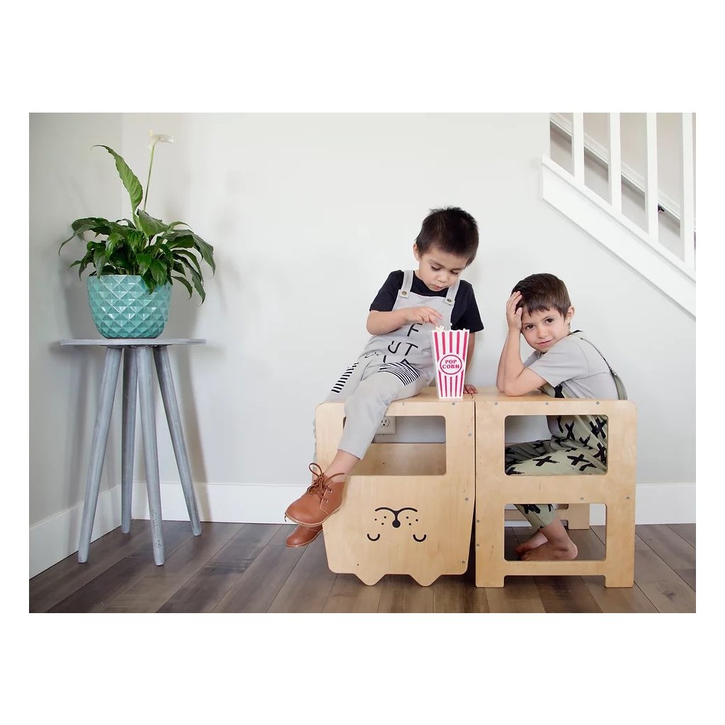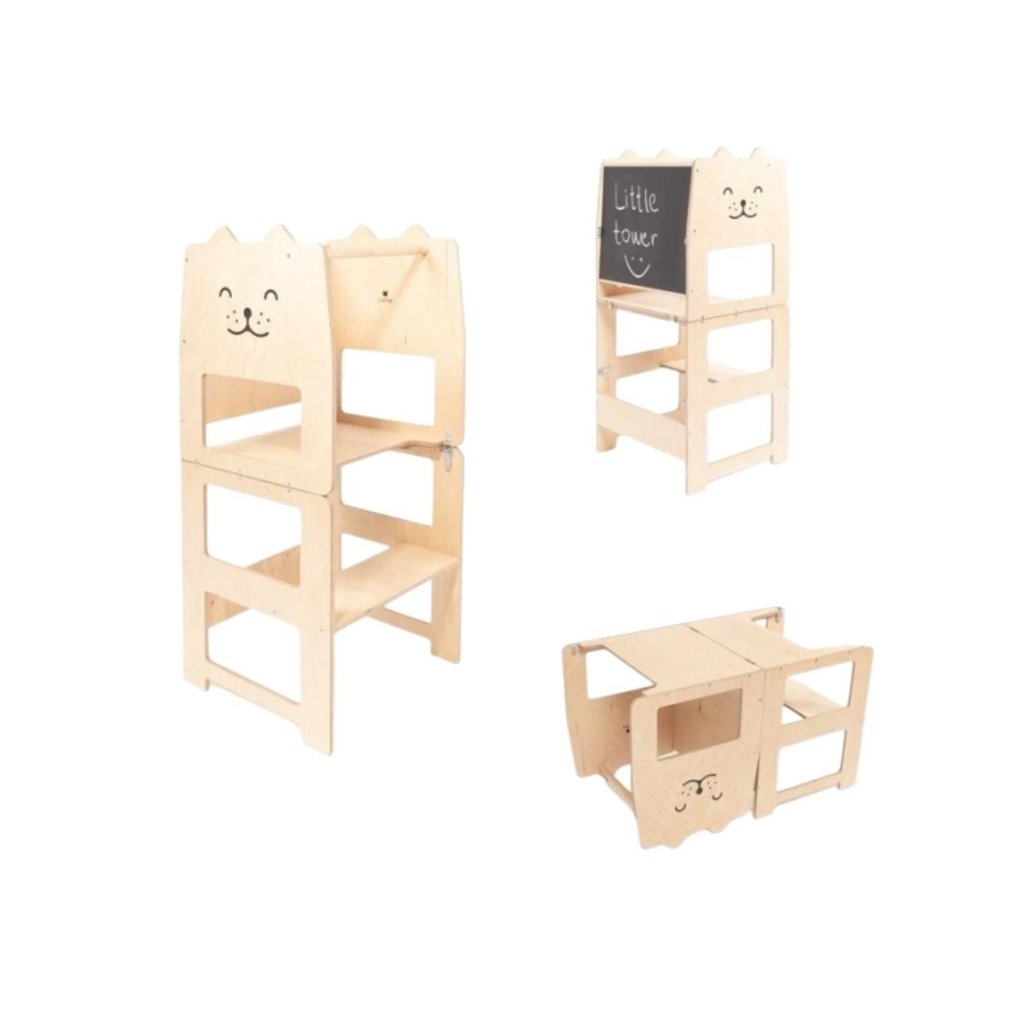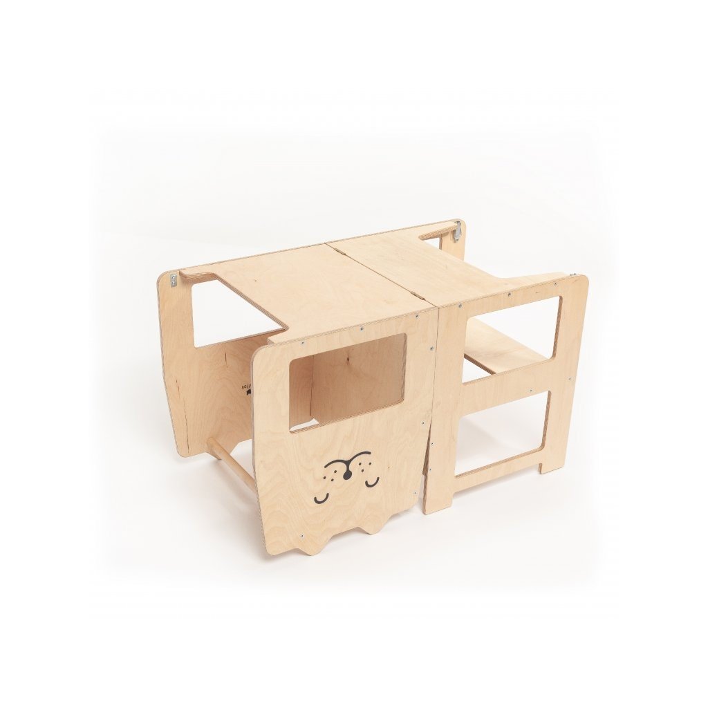 - víceúčelová - slouží jako učící věž, dětský stůl se židlí i jako tabule na kreslení
