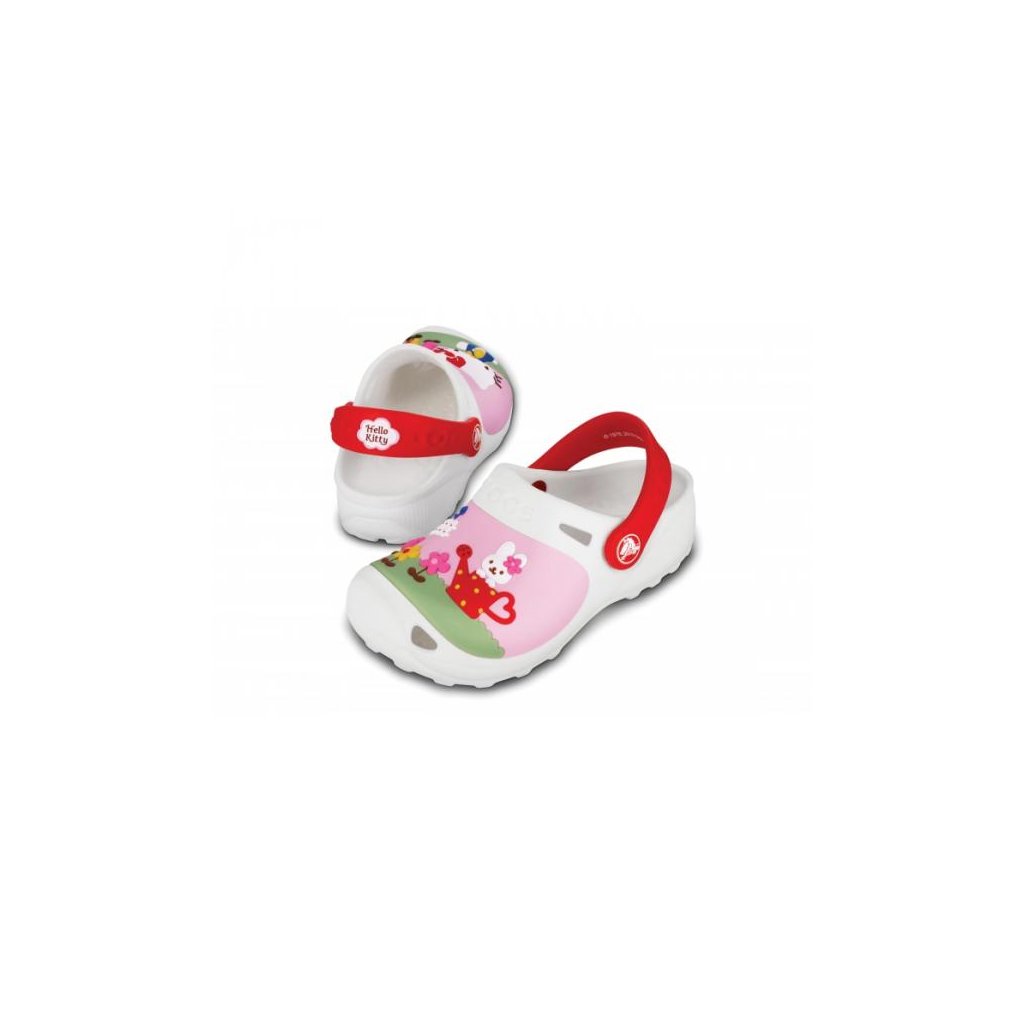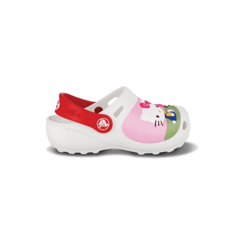 Firma Crocs při výrobě těchto bot spolupracovala s oblíbenou značkou Hello Kitty a díky tomu vnikly tyto dřeváčky s 3D obrázkem, který zaujme hned na první pohled. Boty jsou vyrobené z materiálu Croslite™, který zajišťuje lehkost a maximální odpružení. Zároveň je tento materiál antimikrobiální, odolává zápachu a snadno se udržuje.